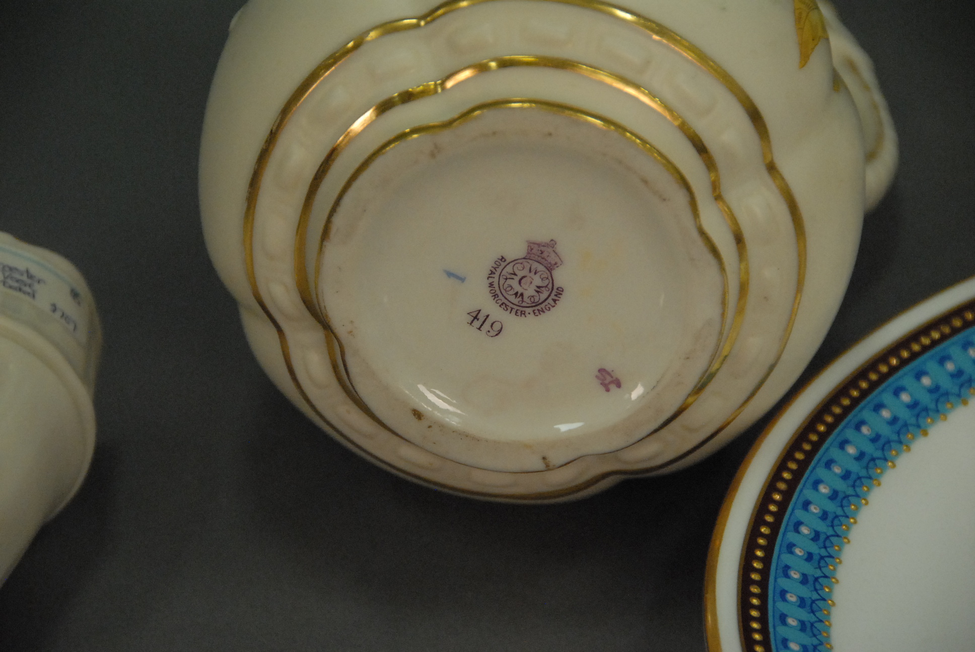 Lot 11: Five pieces or Royal Worcester pair of plates dia