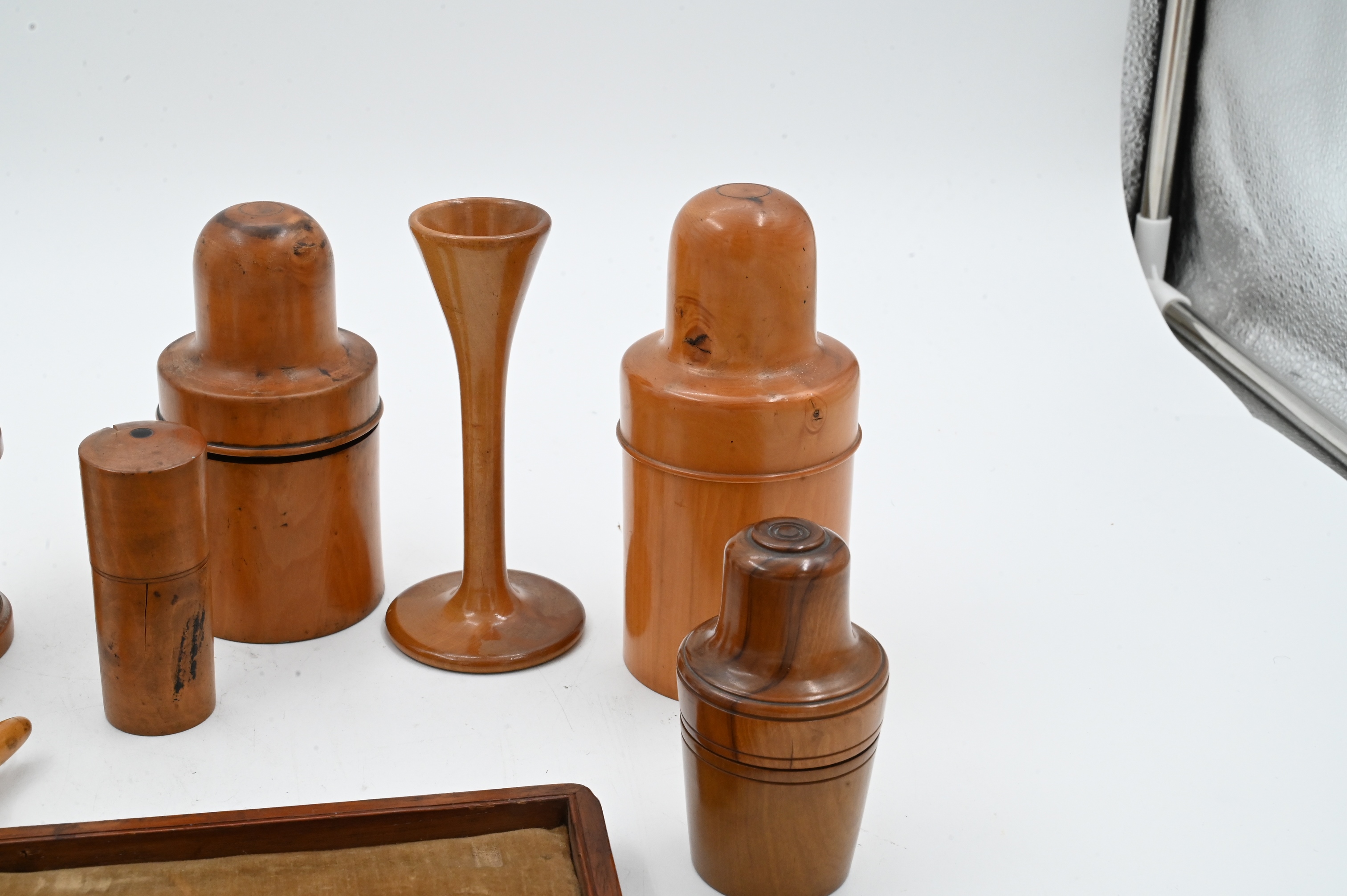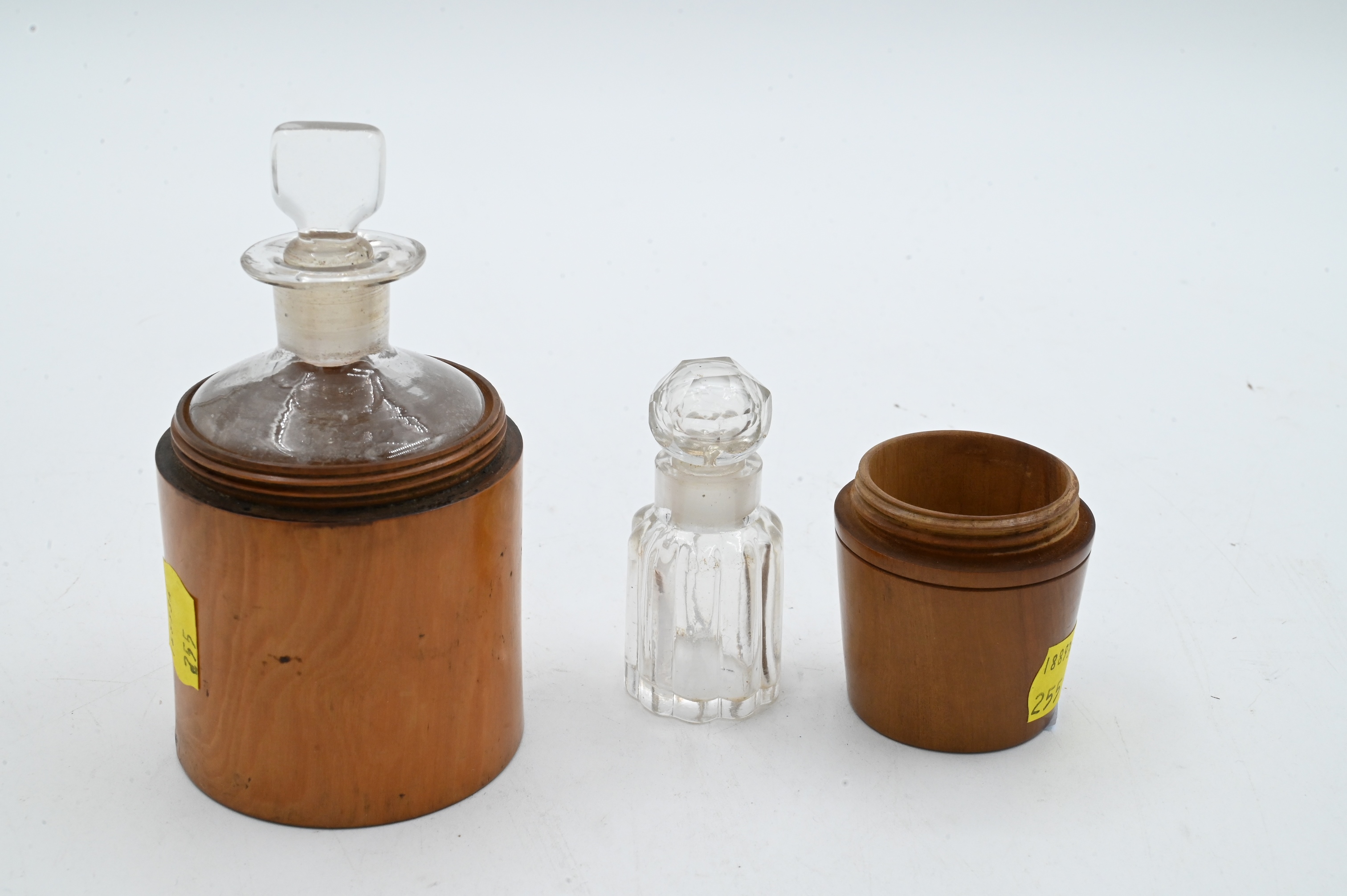 Lot 11: Nine Piece Wooden Lot of Mostly Glass Bottles