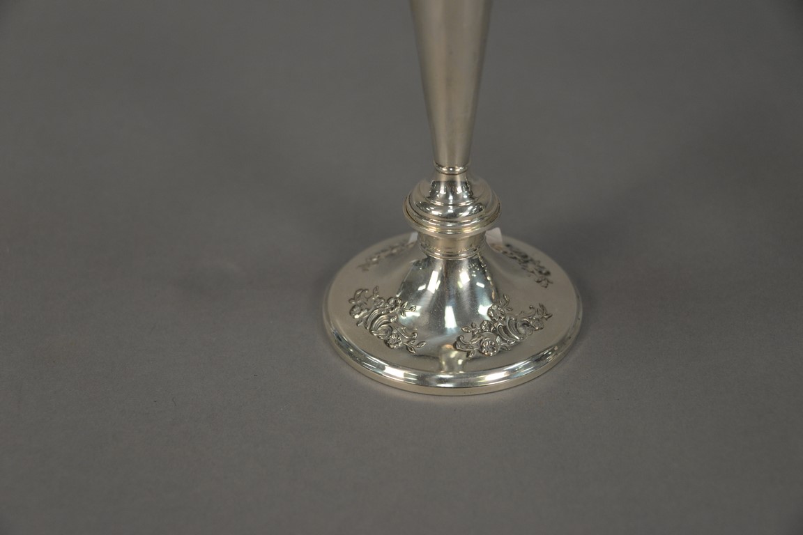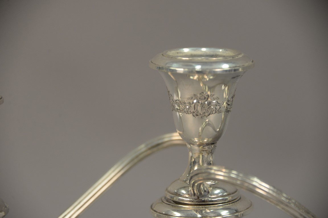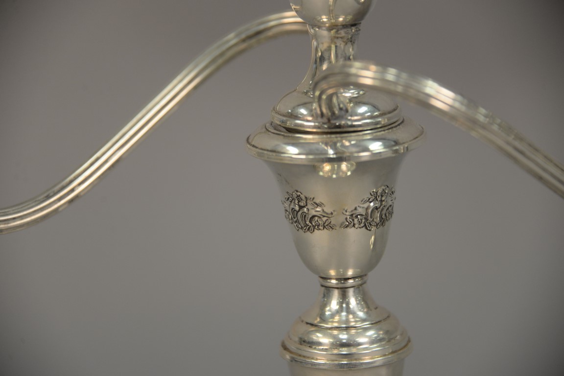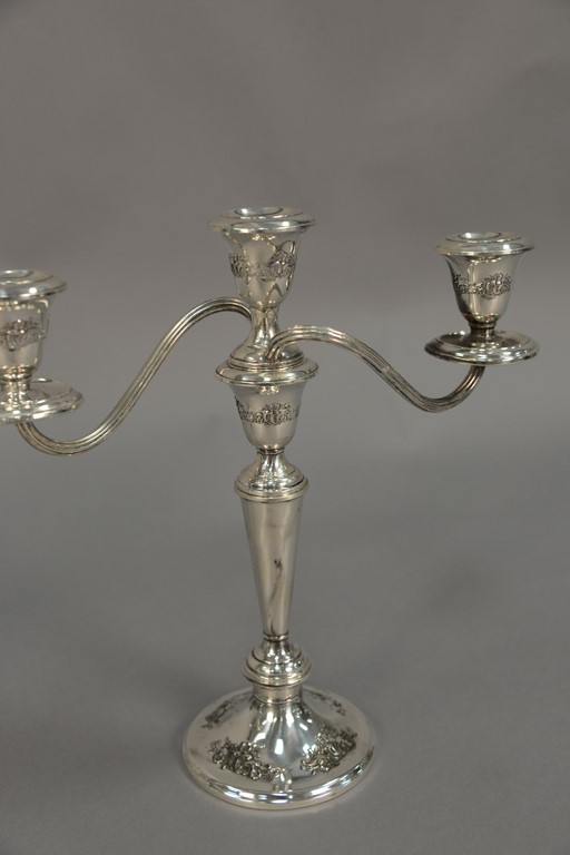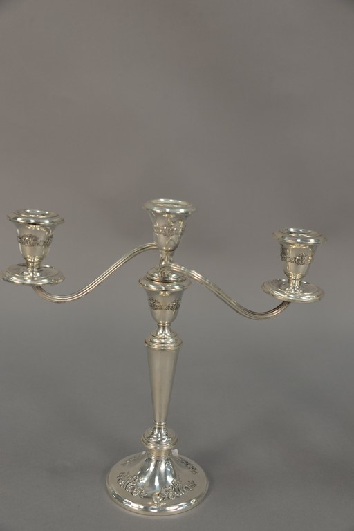 Pair of sterling silver weighted candelabra. ht. 11in., wd. 11 1/2in.