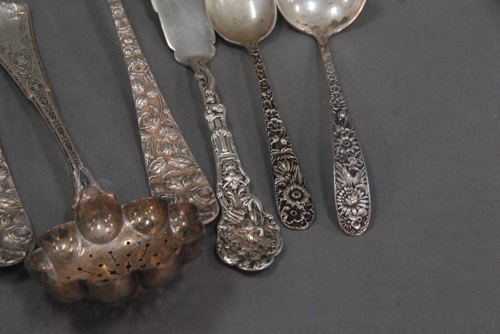 Sterling silver six piece lot: Tiffany strainer spoon including Kirk & Sons, 11.7 t oz.