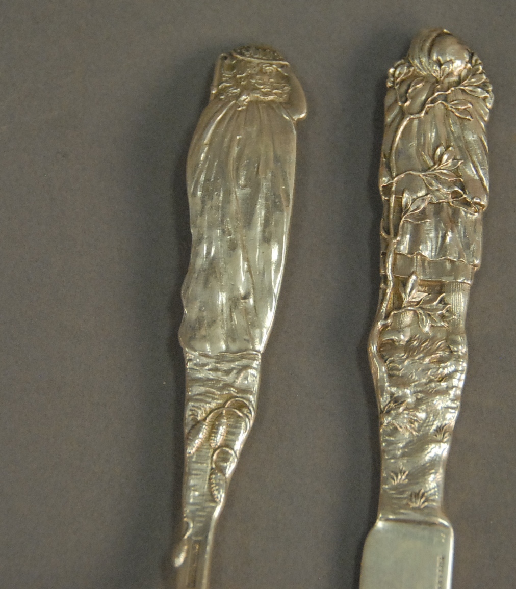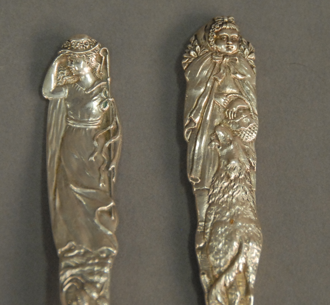 Lot 11: Tiffany sterling children’s flatware fork and knife, knife is Little Red Riding Hood and fork is Little Bo Peep. 3.9 t oz.