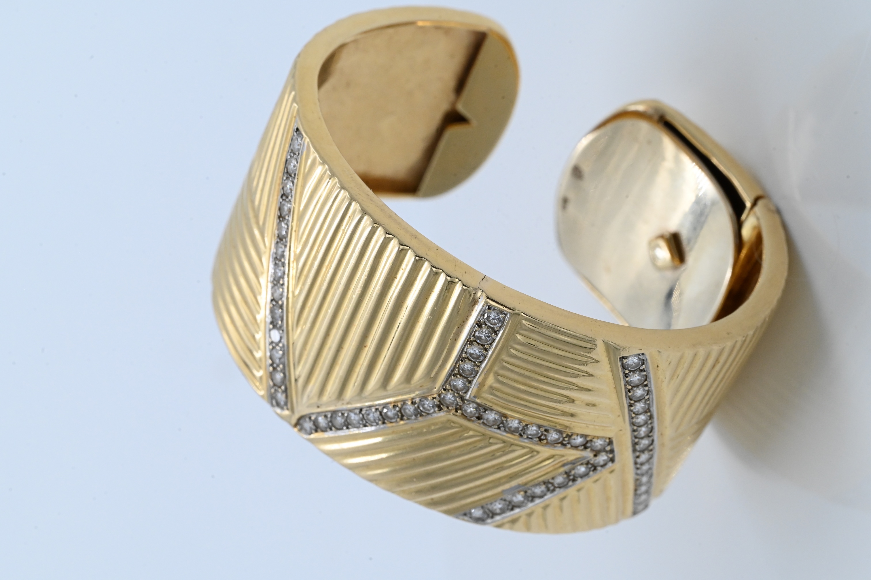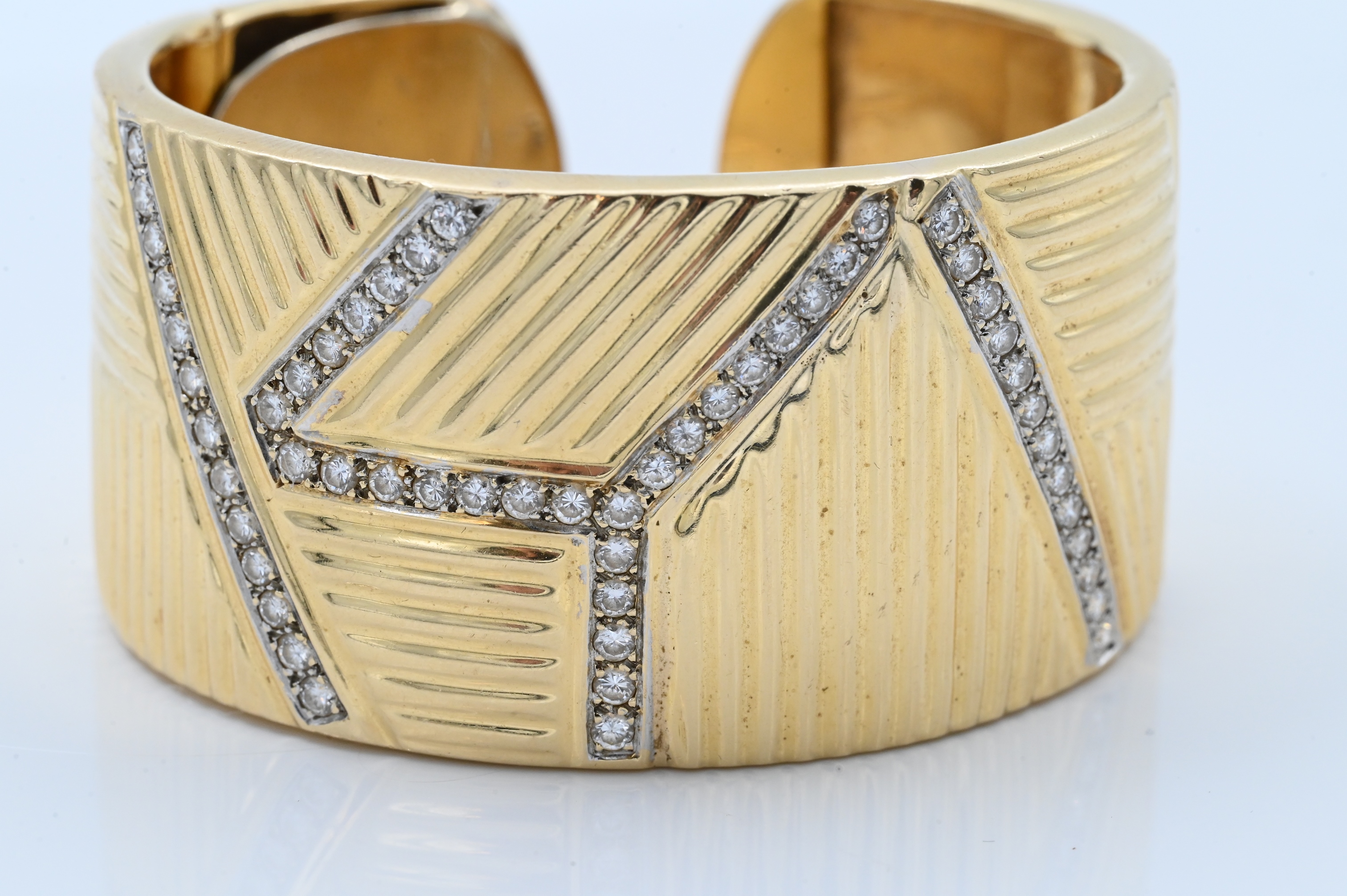 Lot 110: 14K Yellow Gold and Diamond Cuff Bracelet
