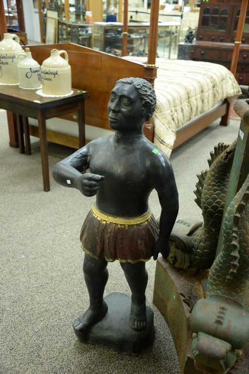 Blackamoor figure reinforced concrete paint decorated, probably 19th century arms and legs repaired, four fingers missing. ht. 47in. Provenance: Collection of Anne Jones Willis and the late John Ralph Willis, New Jersey