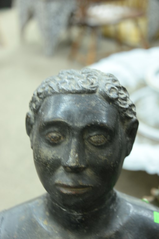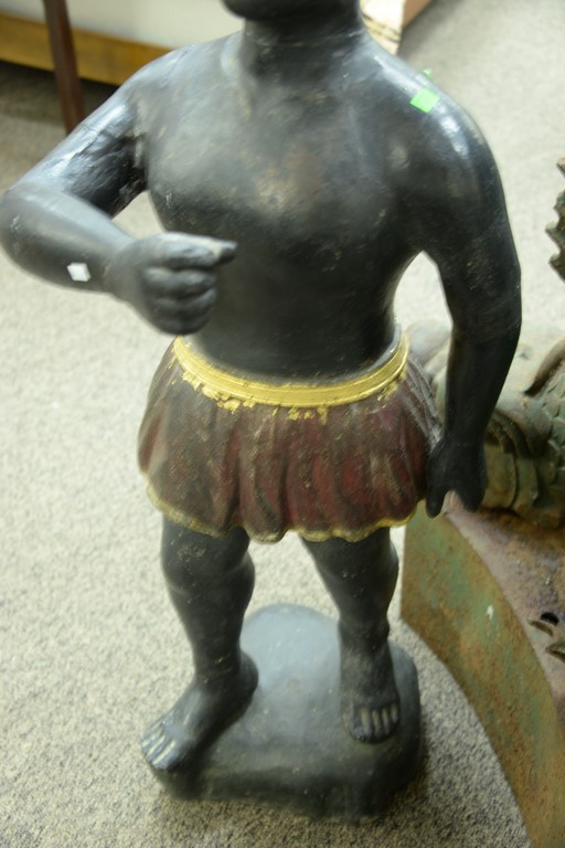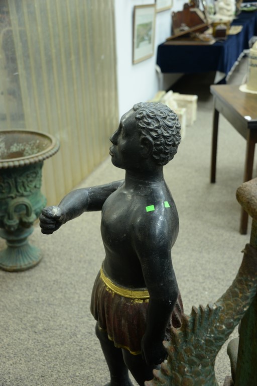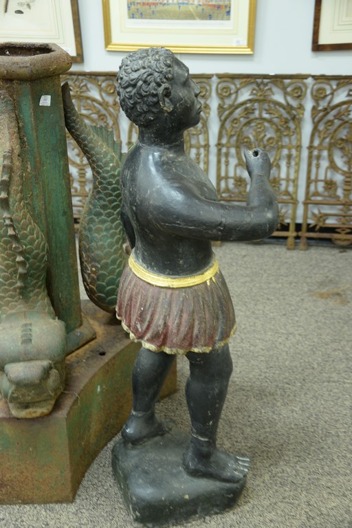 Lot 110: Blackamoor figure reinforced concrete paint decorated, probably 19th century arms and legs repaired, four fingers missing. ht. 47i…