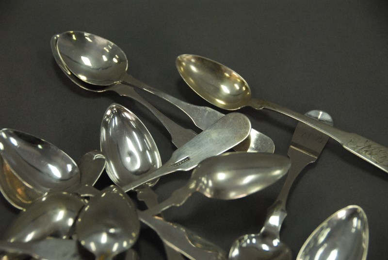 Group of coin silver spoons, S. E. Young, Hoyt, Goodwin, Brewer, etc., 15.5 t oz.