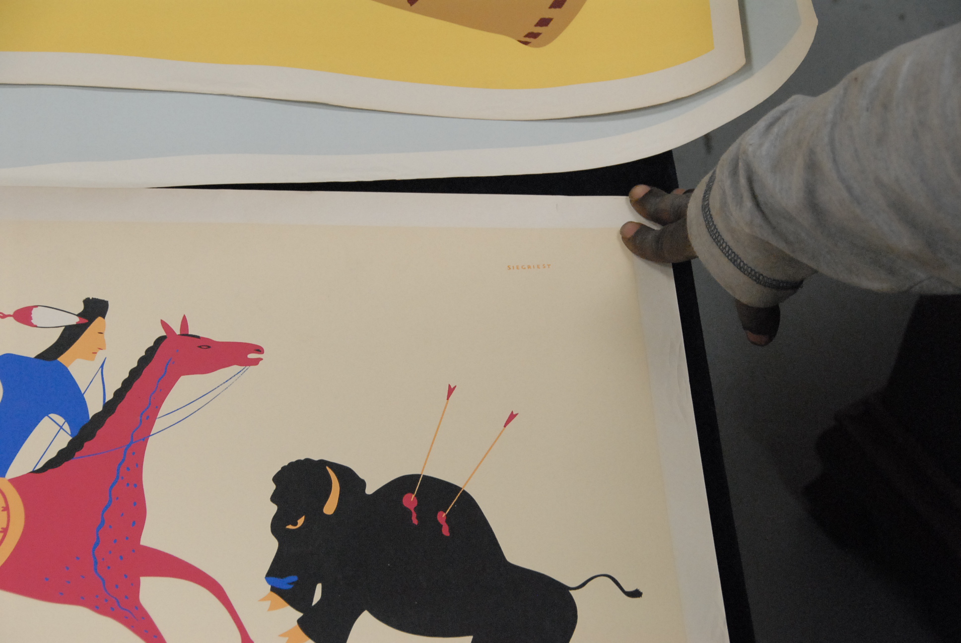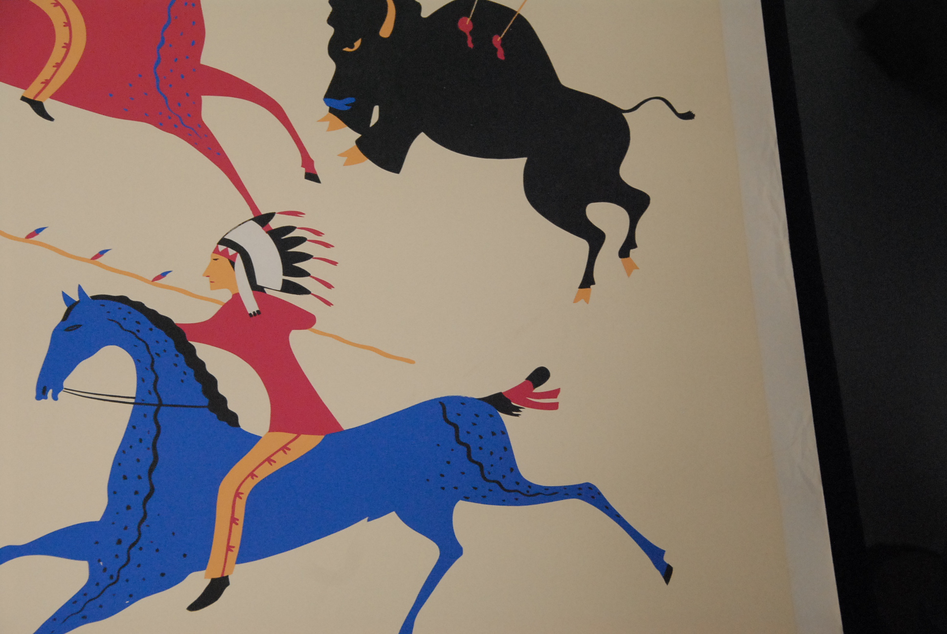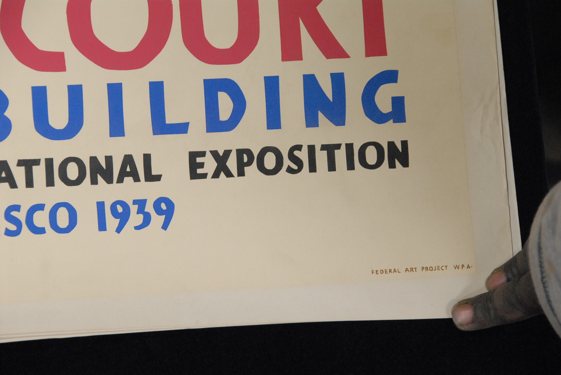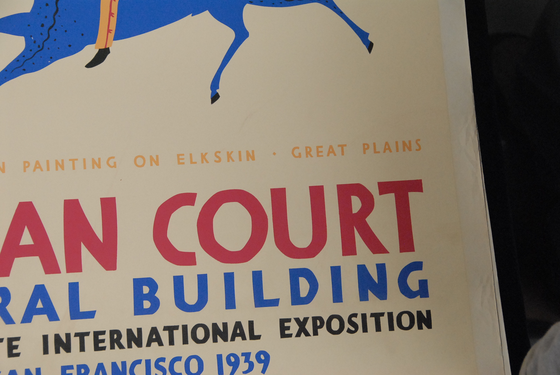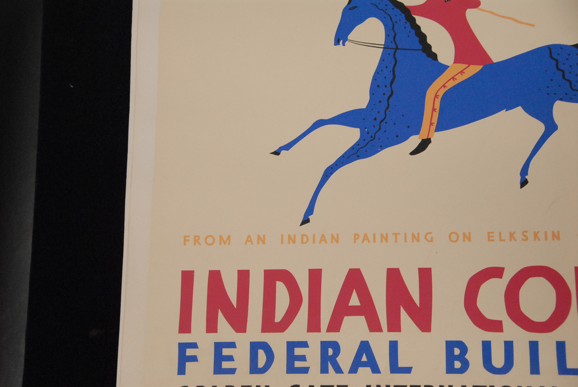 Louis Siegriest 1899-1989 poster Indian Court Federal Building Golden Gate International Exposition San Francisco, 1939: From an Indian painting on elk skin- great plains.