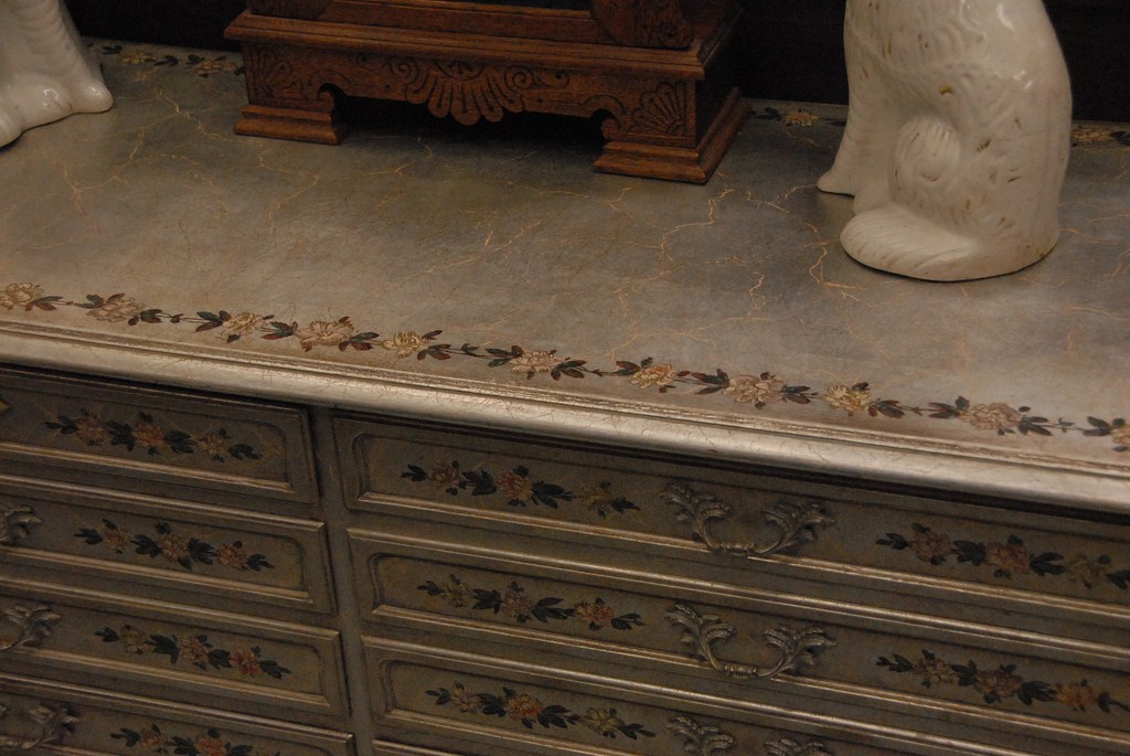 Louis XV Silver gilt twelve drawer double dresser with floral decoration, ht. 31, top: 20 x 50.