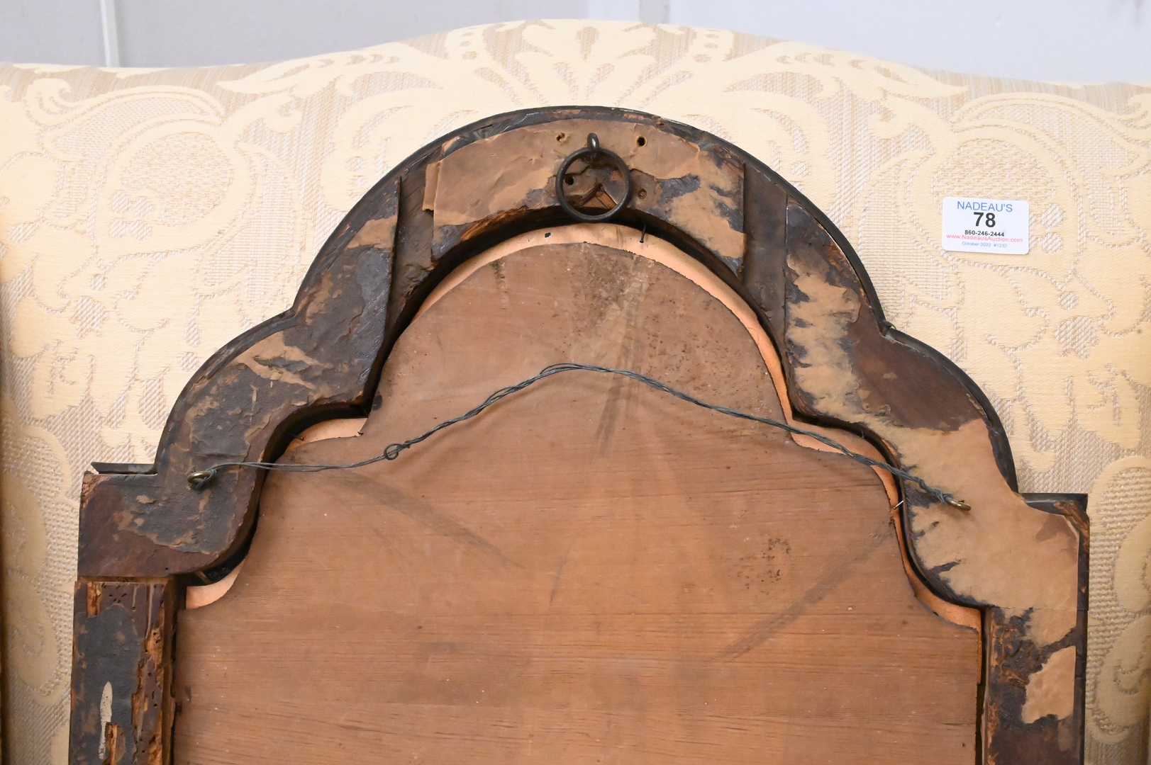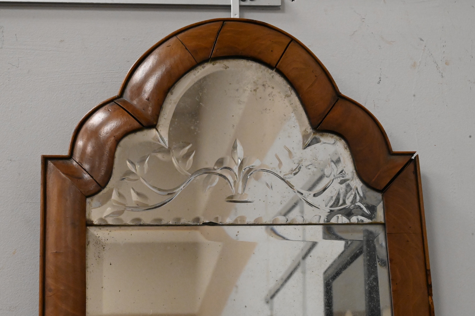Queen Anne Two Part Mirror, having etched floral design in top tablet, height 33 inches, width 17 inches. Provenance: Estate of Peter Tillou, Litchfield, Connecticut.