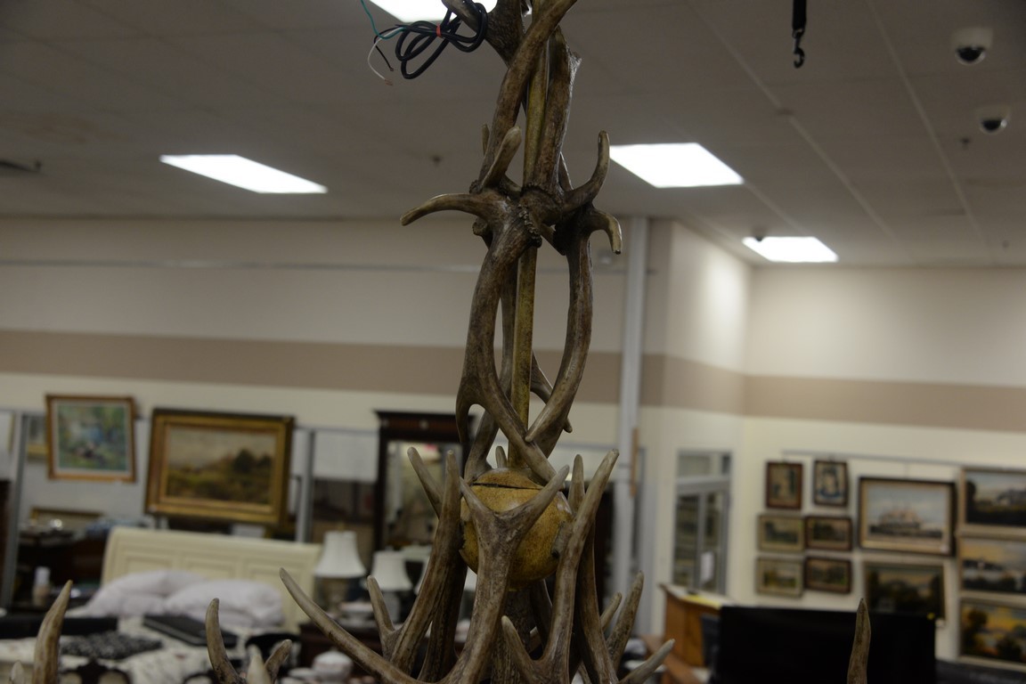 Lot 110: Six light antler chandelier. ht. 45in., dia. 38in.
