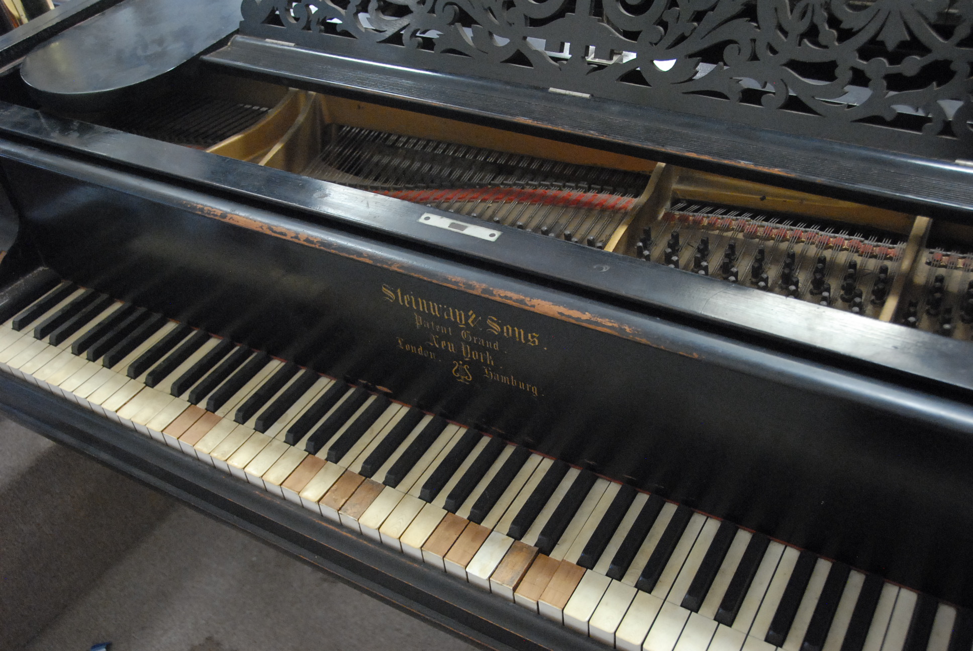 Lot 110: Steinway & Sons patent grand piano, ebonized overstrung scale, pat dates 1859, 1872, 1876, and 1878 some ivories missing.