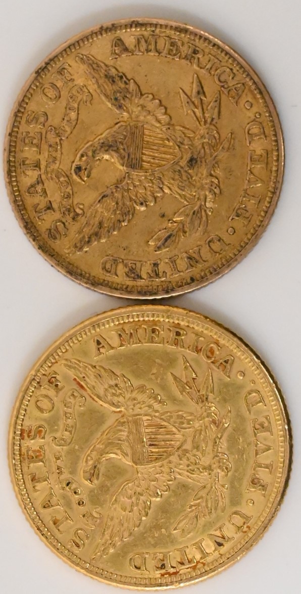 Two Gold Coins, to include five dollar Liberty gold, 1881 and 1904.
