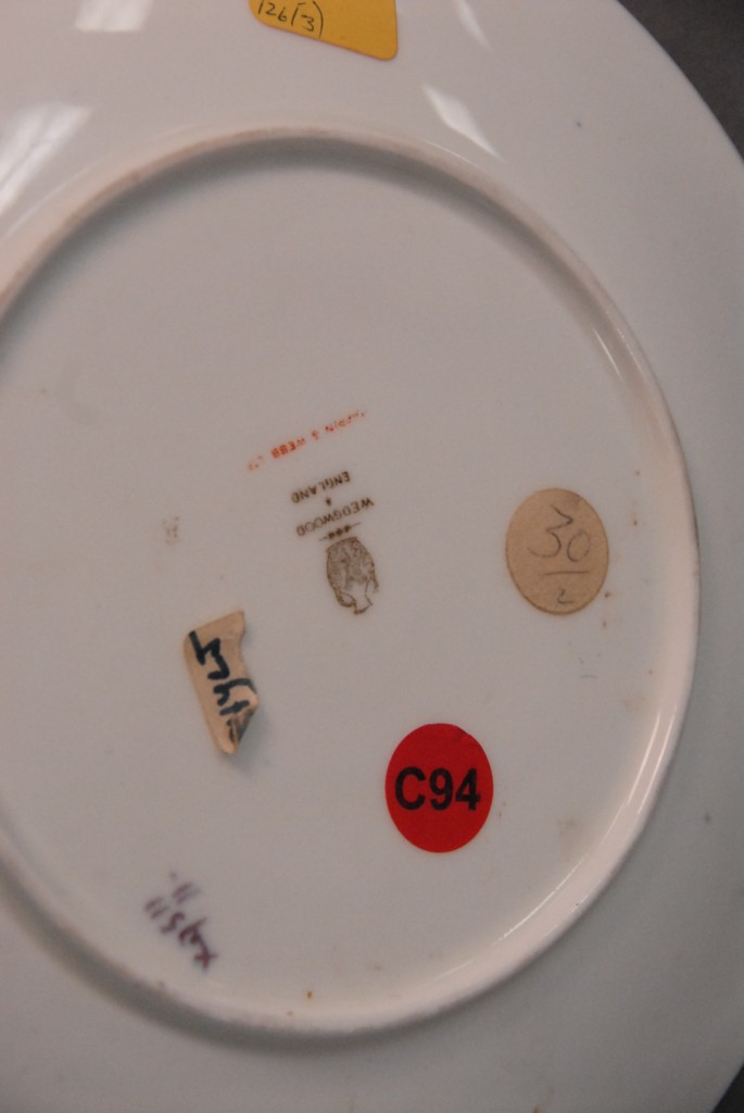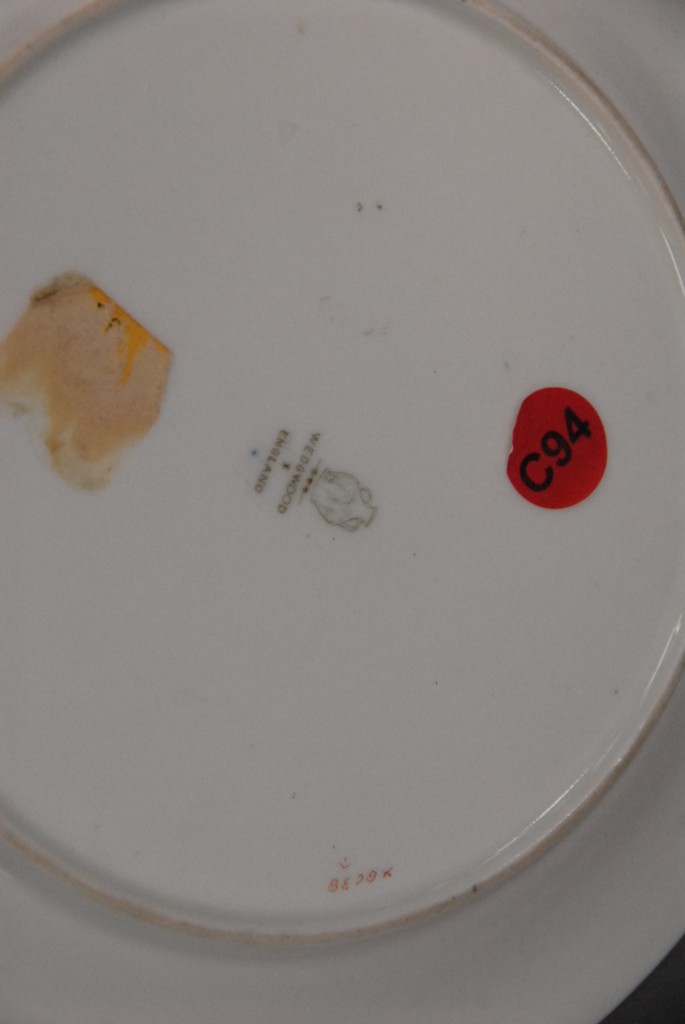 Two Wedgwood plates one with butterfly and one with foo-dog, numbered X8638 and X9511. diameter 9in.