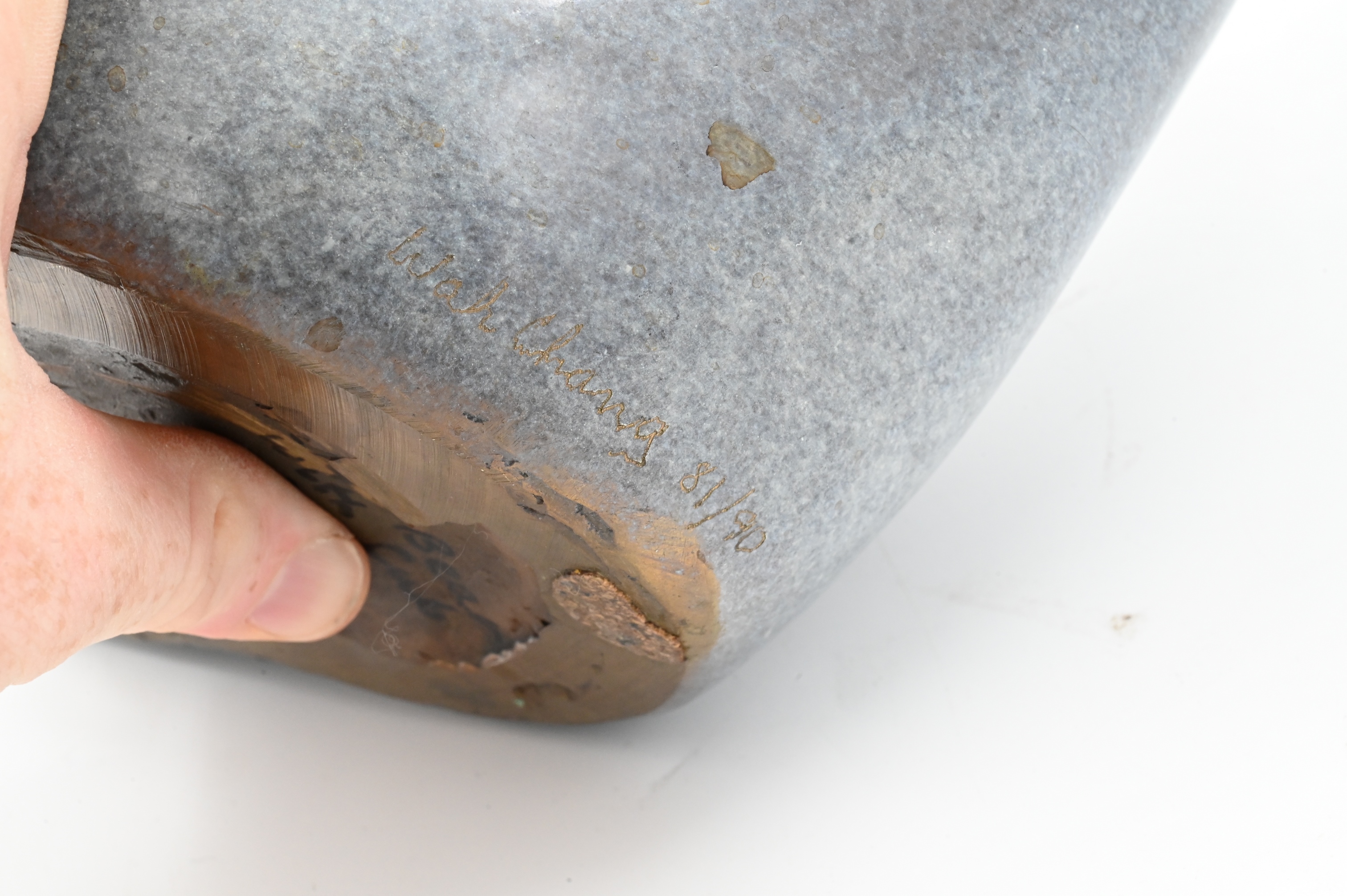 Signed “Wah Chang” on base, inscribed on verso