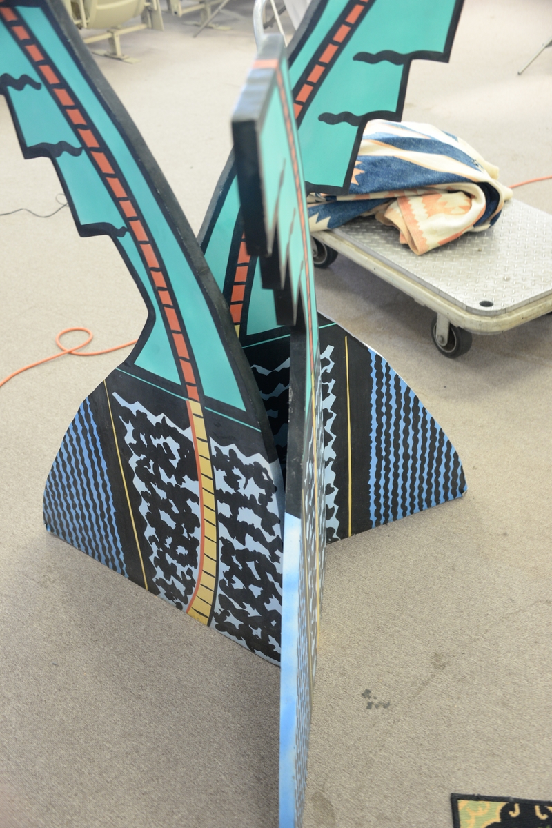 Wendy Lehman outdoor painted wood tree sculpture. ht. 48in., wd. 40in.