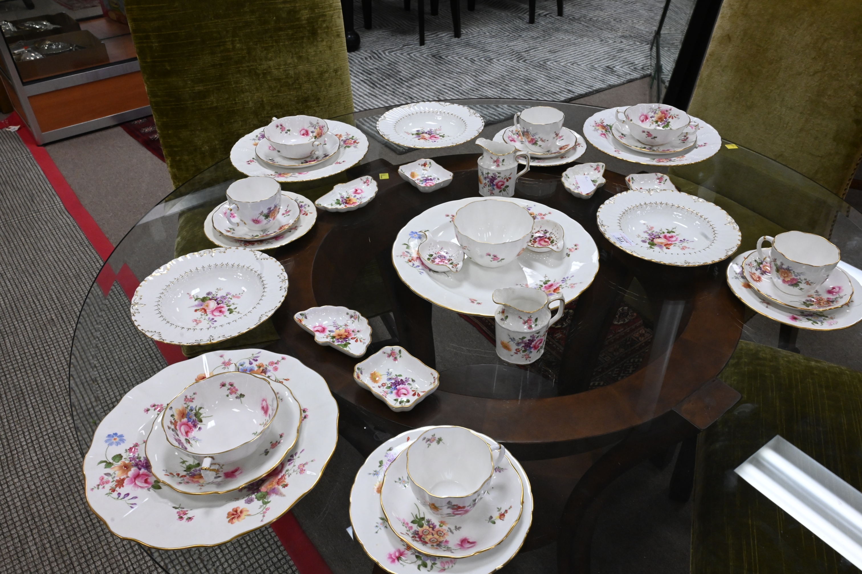 Lot 111: 94 Piece Royal Crown Derby “Derby Posies” Dinner Service