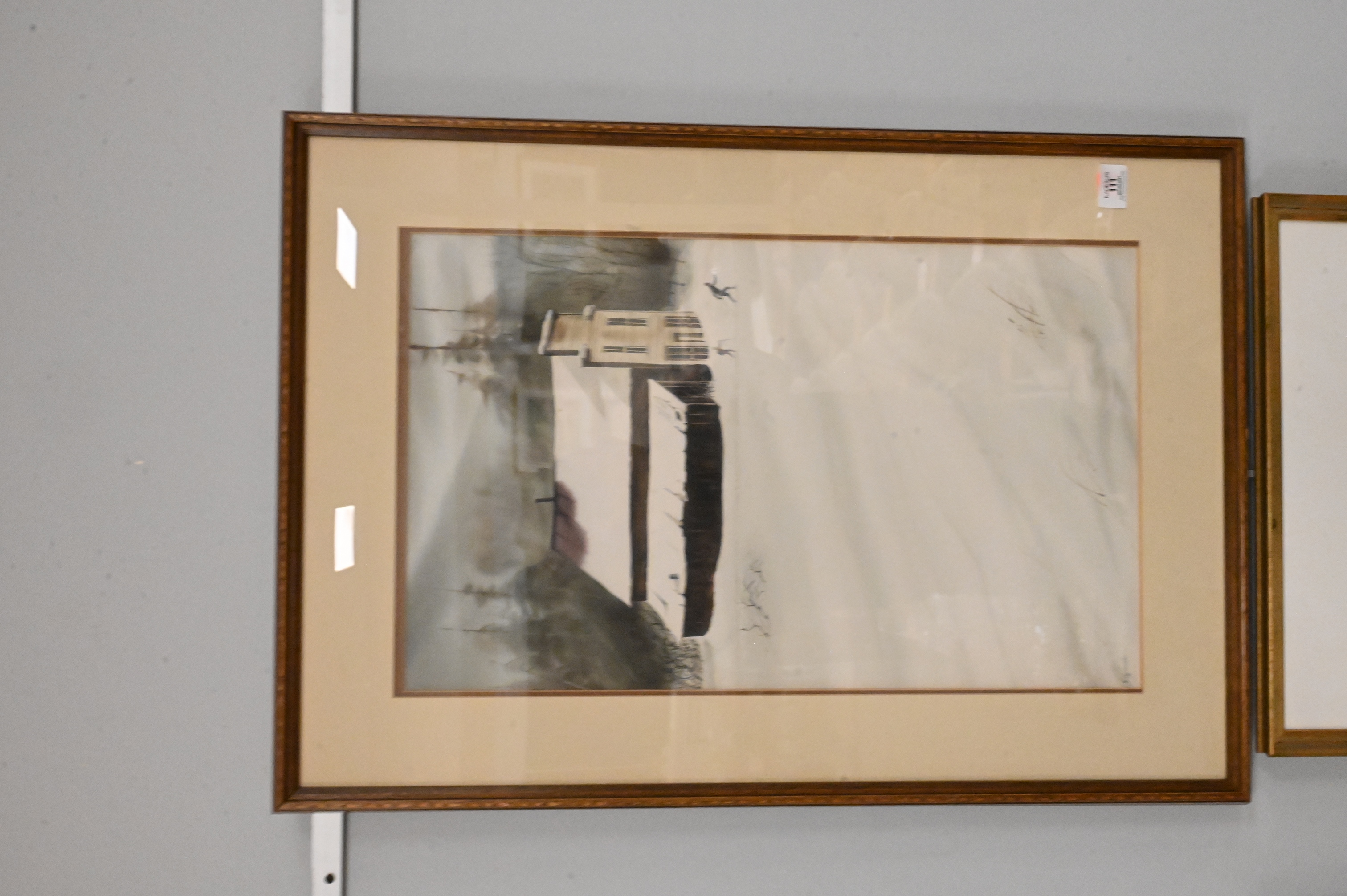 Winter Landscape with Skiers and Building