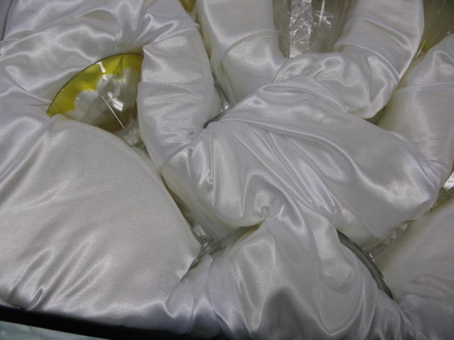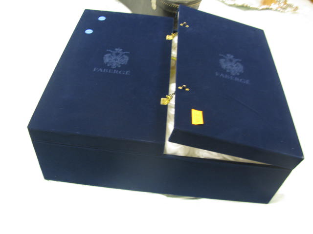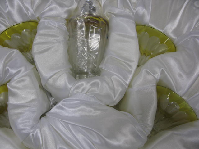 Faberge crystal cocktail shaker yellow to clear, along with four yellow to clear crystal stems, each signed Faberge, in a fitted box.