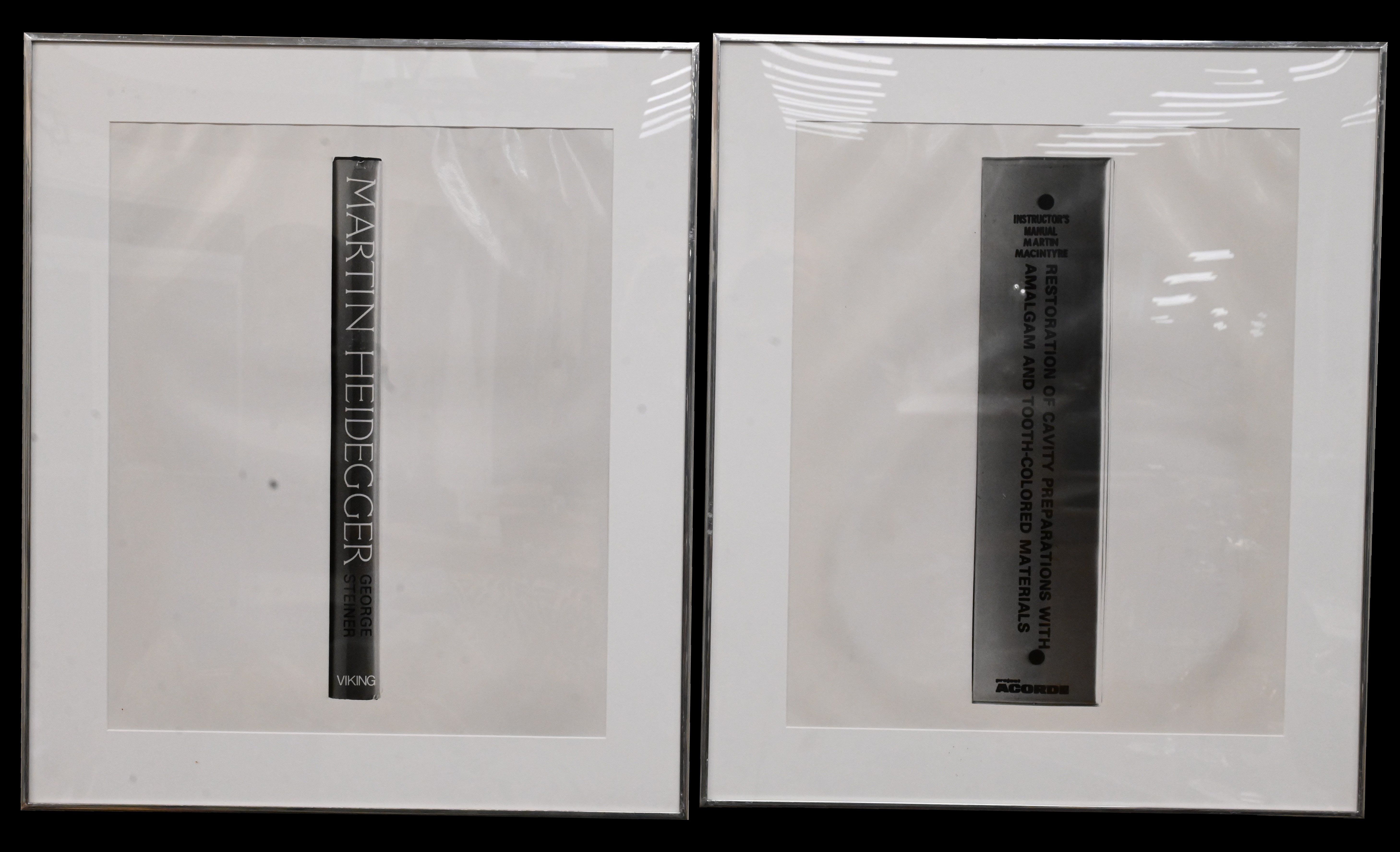 Lew Thomas (American, 1932 – 2021), Four Piece Framed Lot, gelatin silver prints, 1980, to include ‘Stains’; ‘Van Gogh’; ‘Restoration of Cavity Preparations’; along with ‘Martin Heidegger’, each 24″ x 20″.