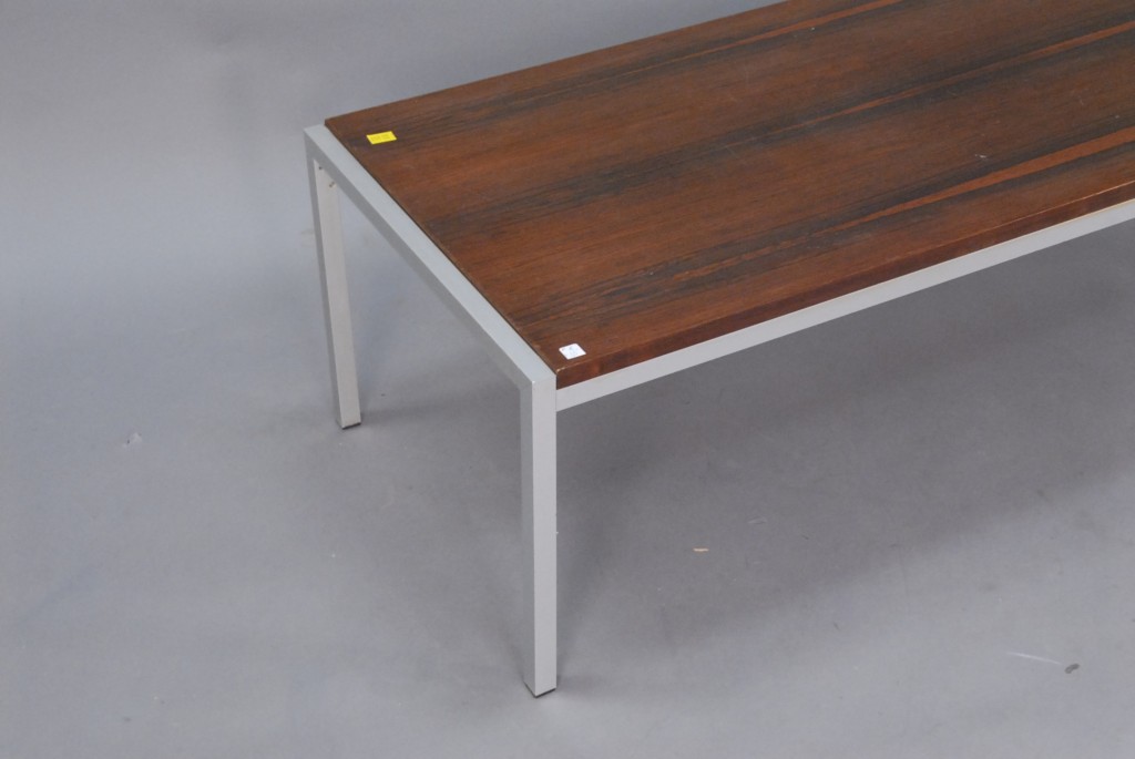 Mid Century rosewood and metal rectangular coffee table, ht. 16, lg. 55.