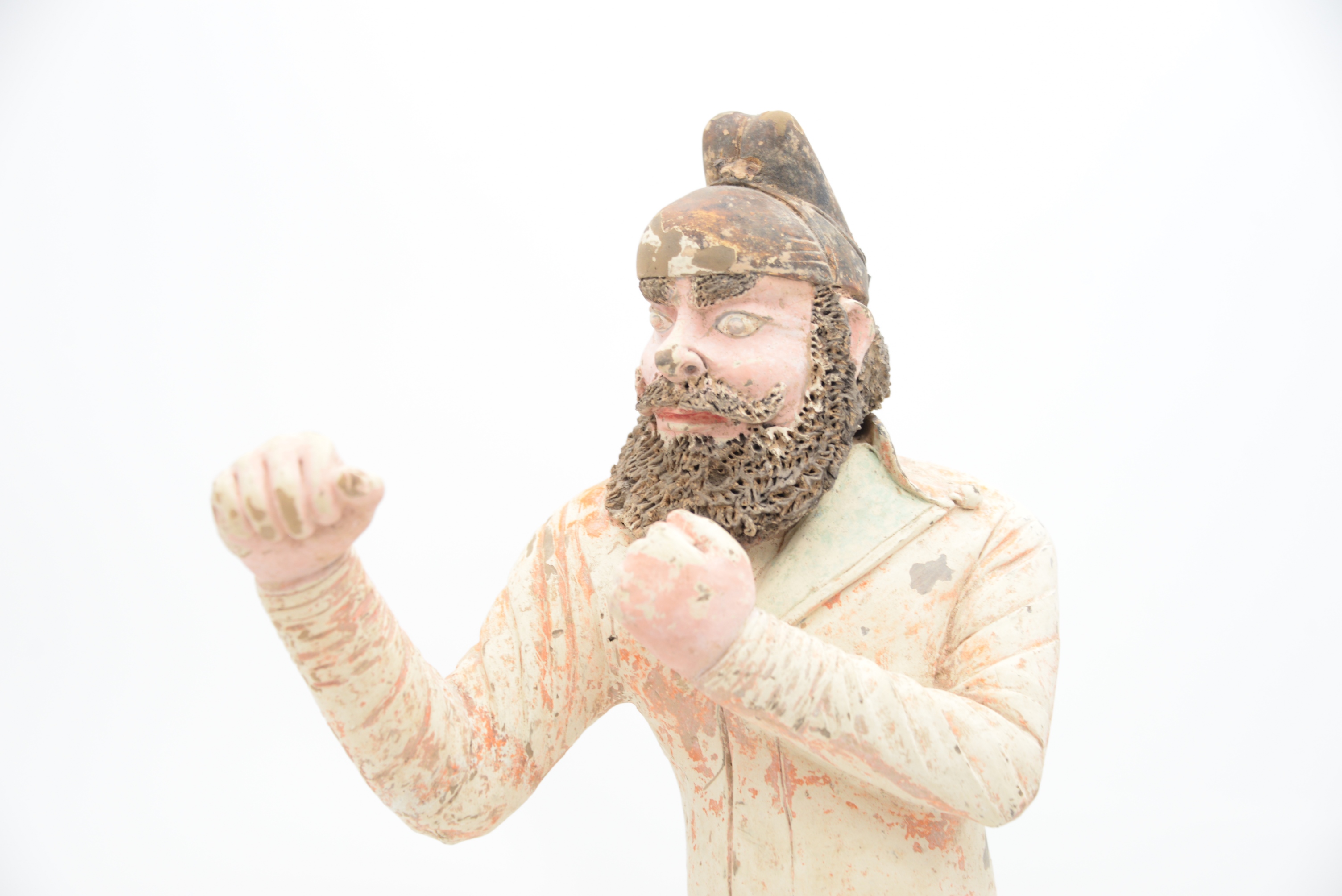 Standing Pottery Figure of a Man or Warrior, in fighting or boxing position, Tang Dynasty or later, height 22 inches