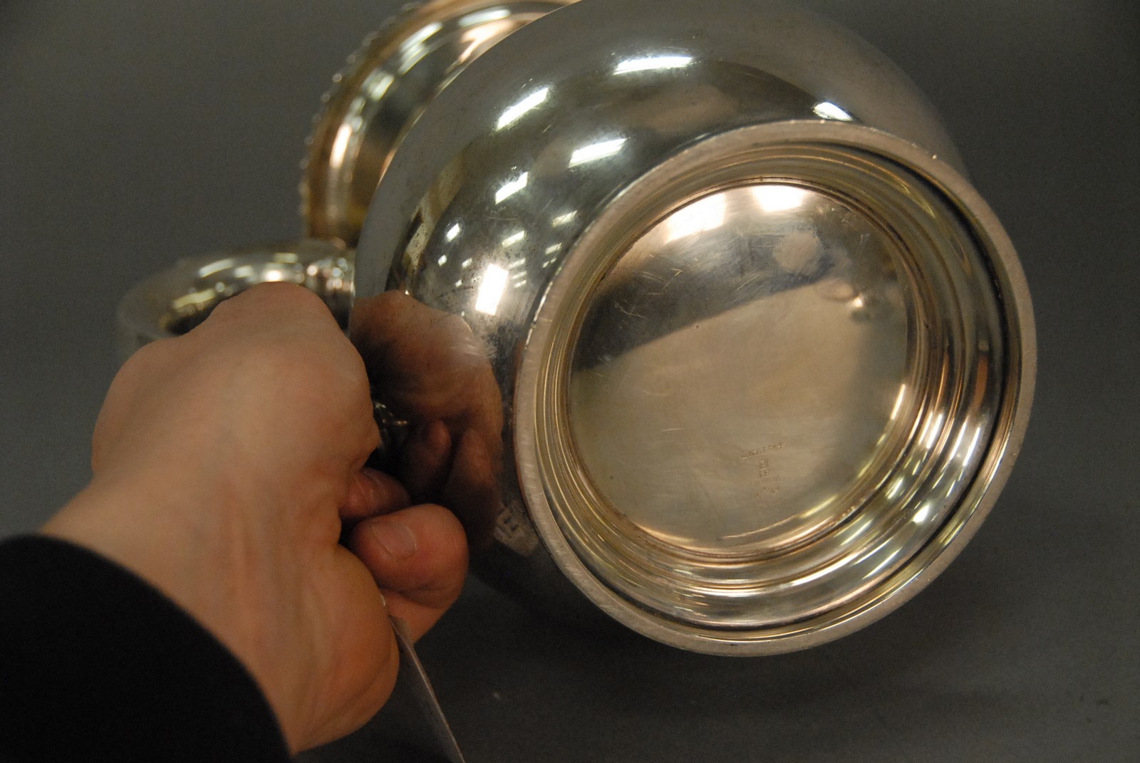 Sterling silver pitcher with gardrooned top. ht. 8 in. 33.5 t oz.