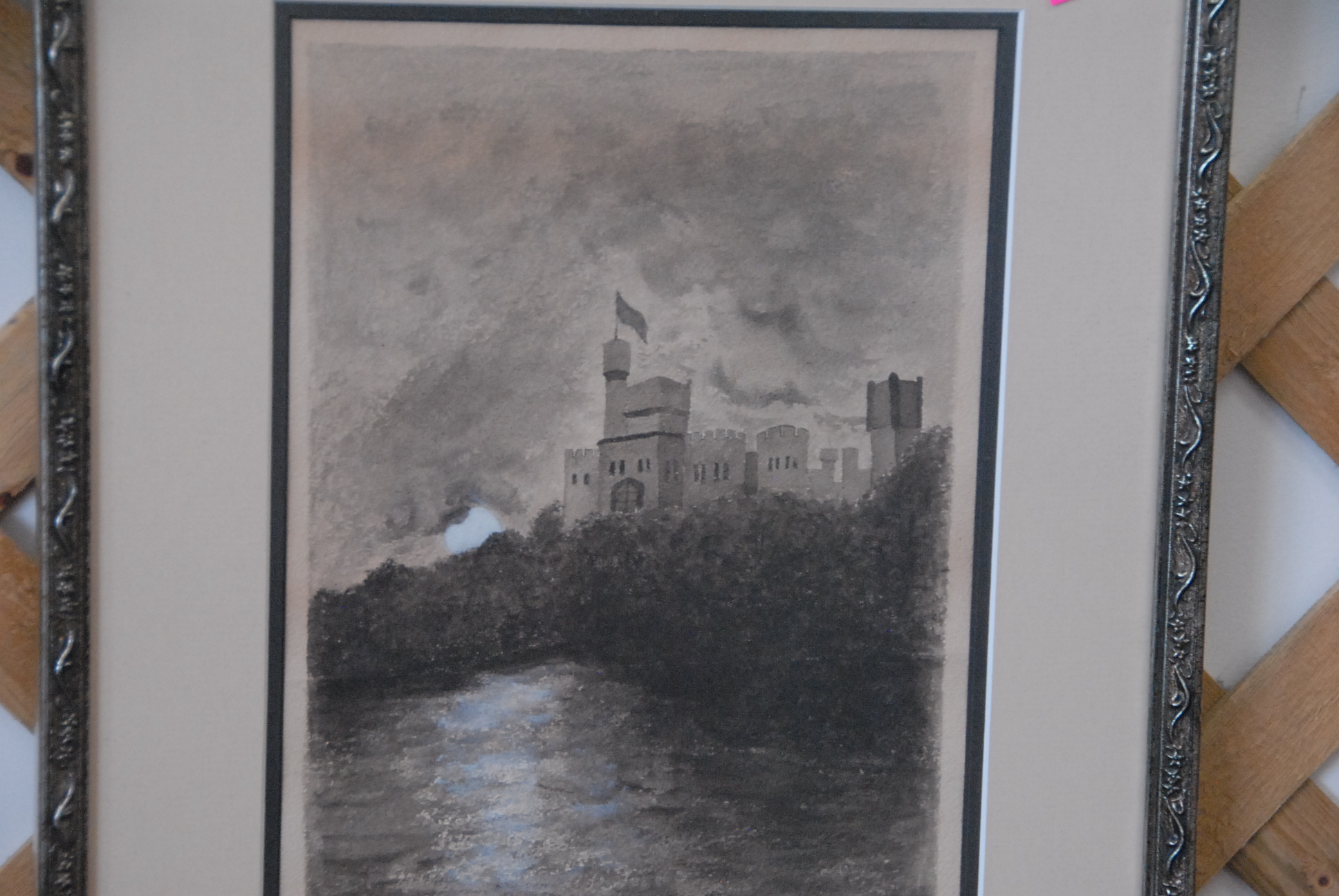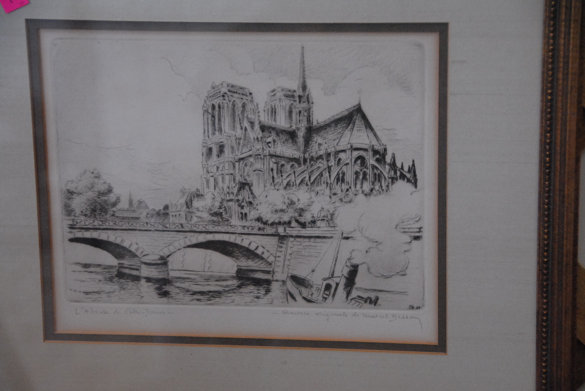 Lot 111: Two framed pieces to include L’Abside de Notre-Dame M. Besson and watercolor Inverness Castle Scotland.