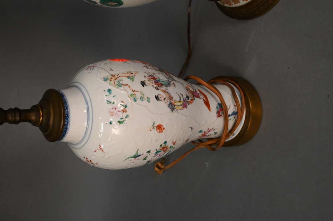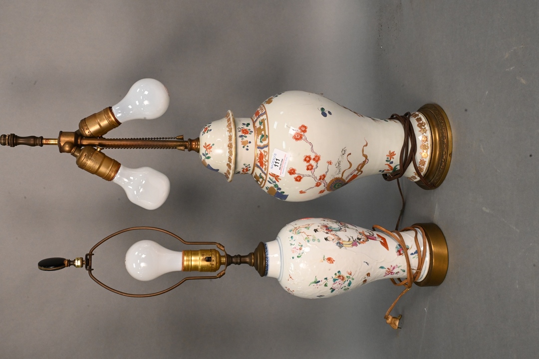 Two Samson Porcelain Vases, made into table lamps, total height 29 inches, vase height 16 inches, Provenance: Estate of Cyril H. Moore Jr, Kent, Connecticut.
