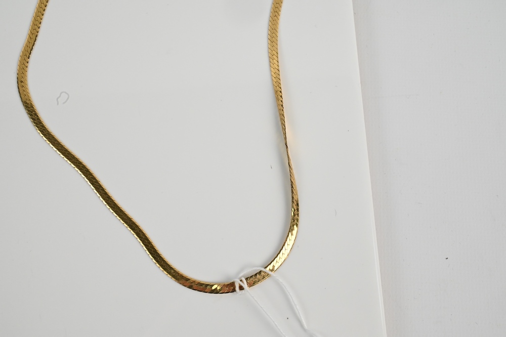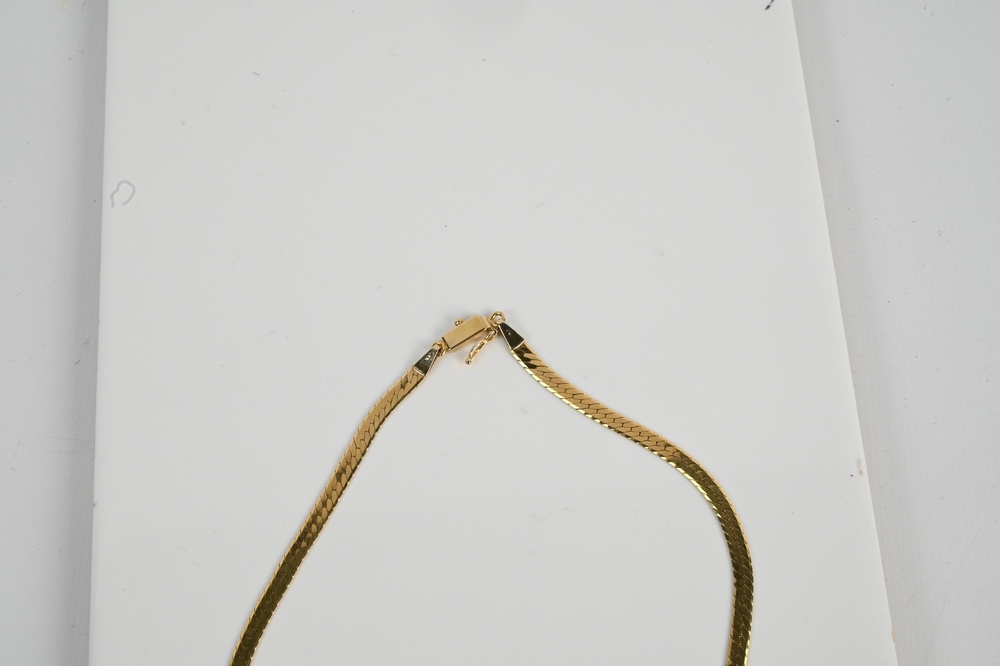 Lot 112: 14 Karat Gold Wishbone Necklace, length 18 inches, 11 grams.