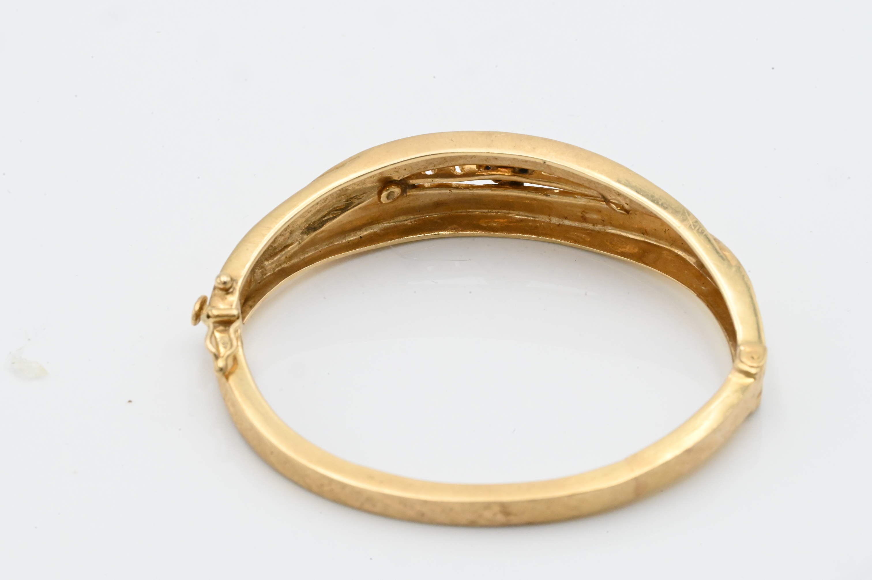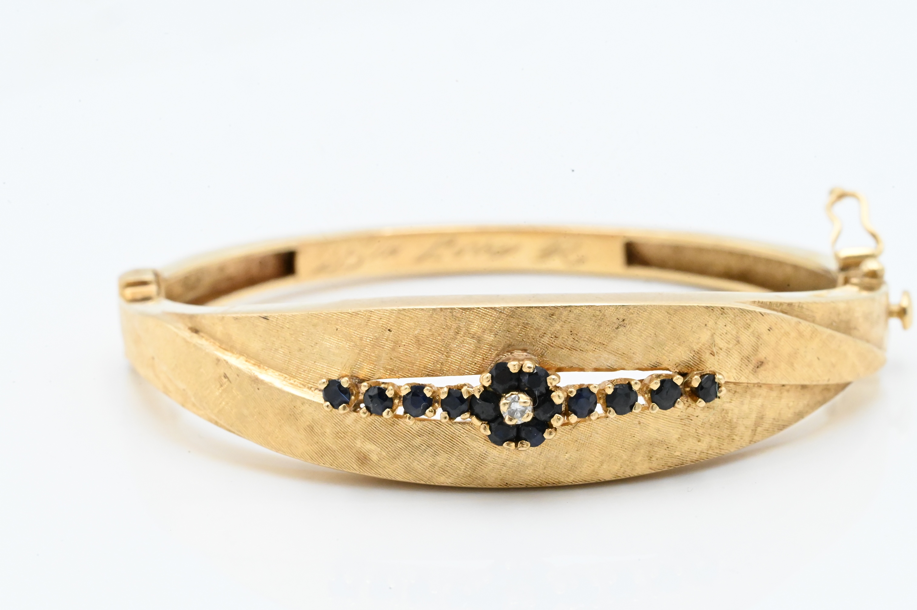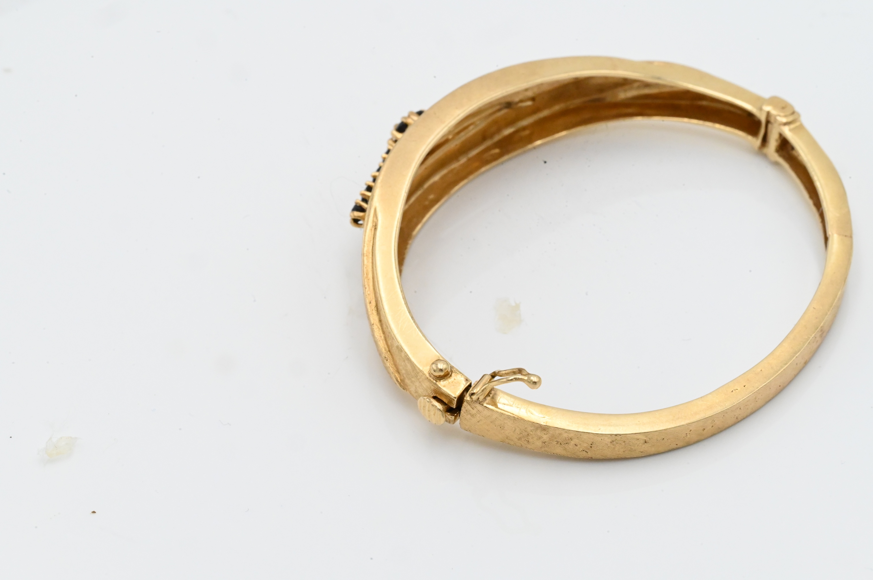 Lot 112: 14K Yellow Gold Bangle Bracelet Set with Blue Stones