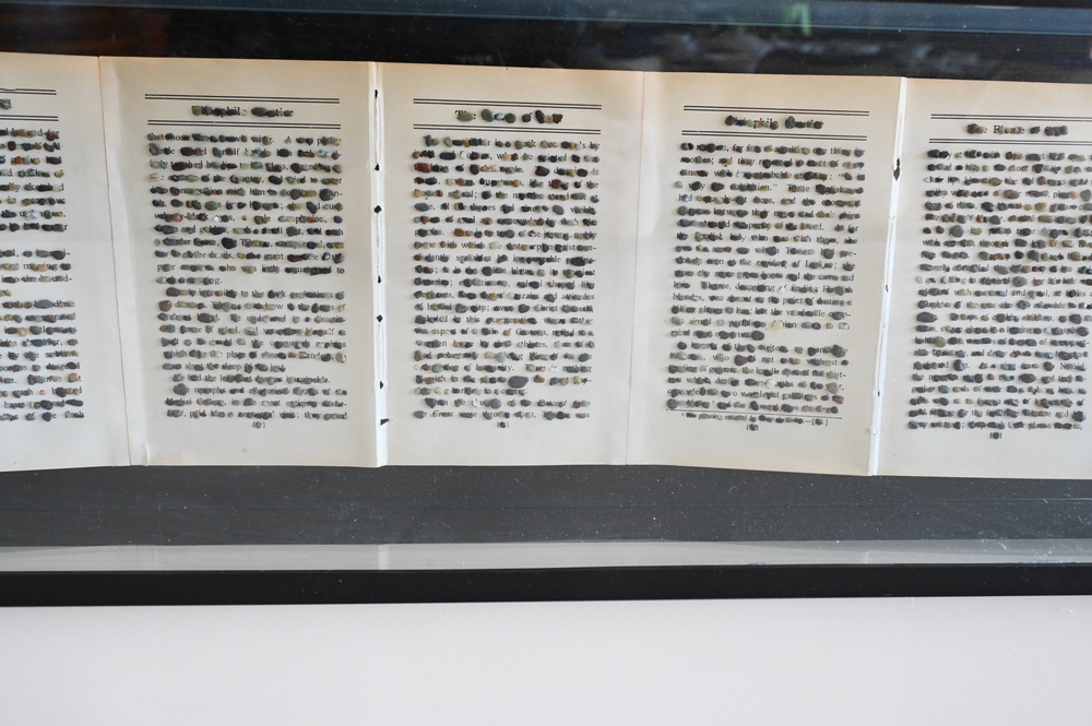 Ann Hamilton (b. 1956), Cryptogram Book, 1992, book with colored stones in lacquered birch box and glass case, edition of 40, signed in pencil, 3 5/8″ x 9.25″ x 38 5/8″. Provenance: Property from the Estate of Anita and Burton Reiner.