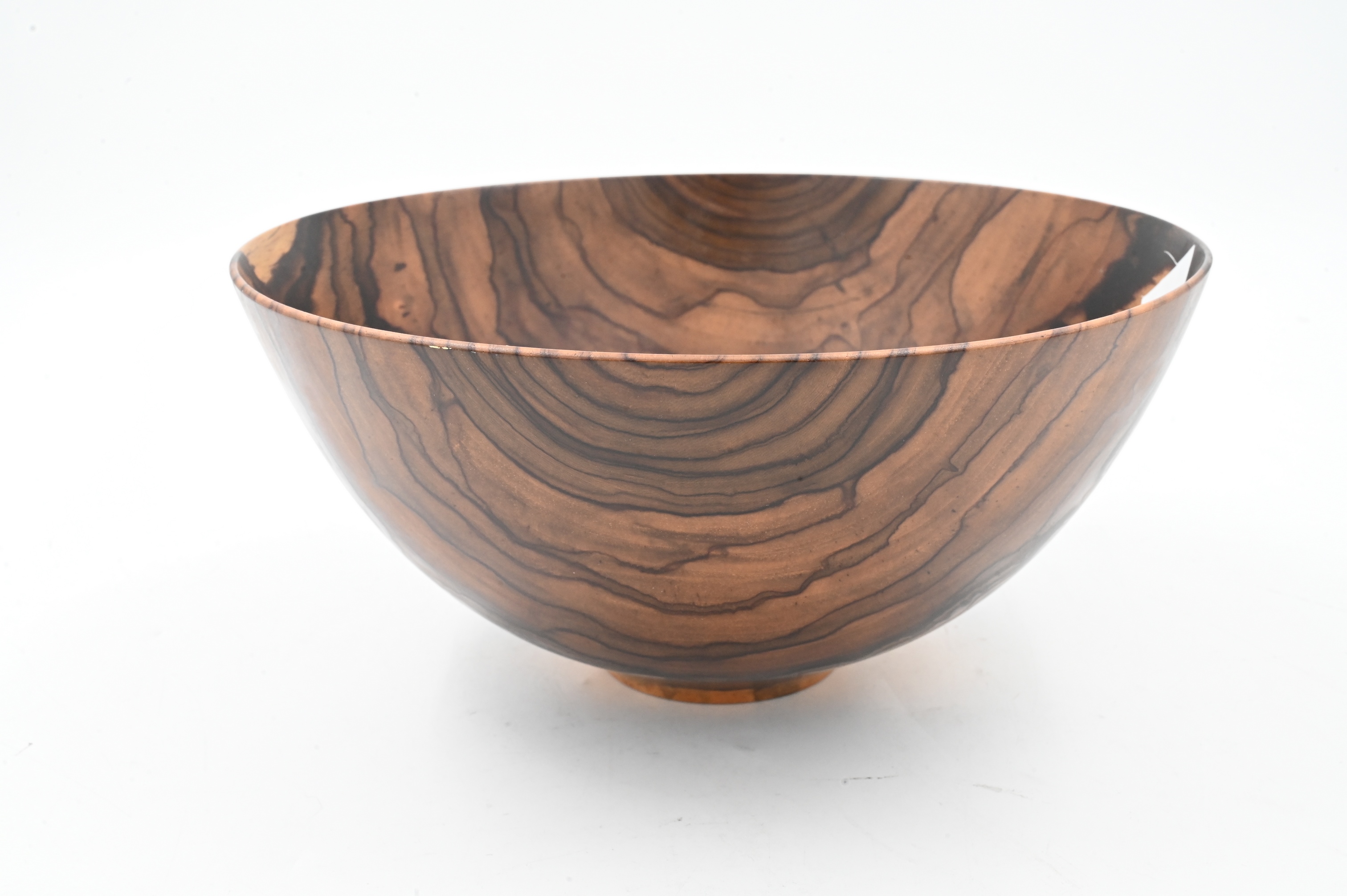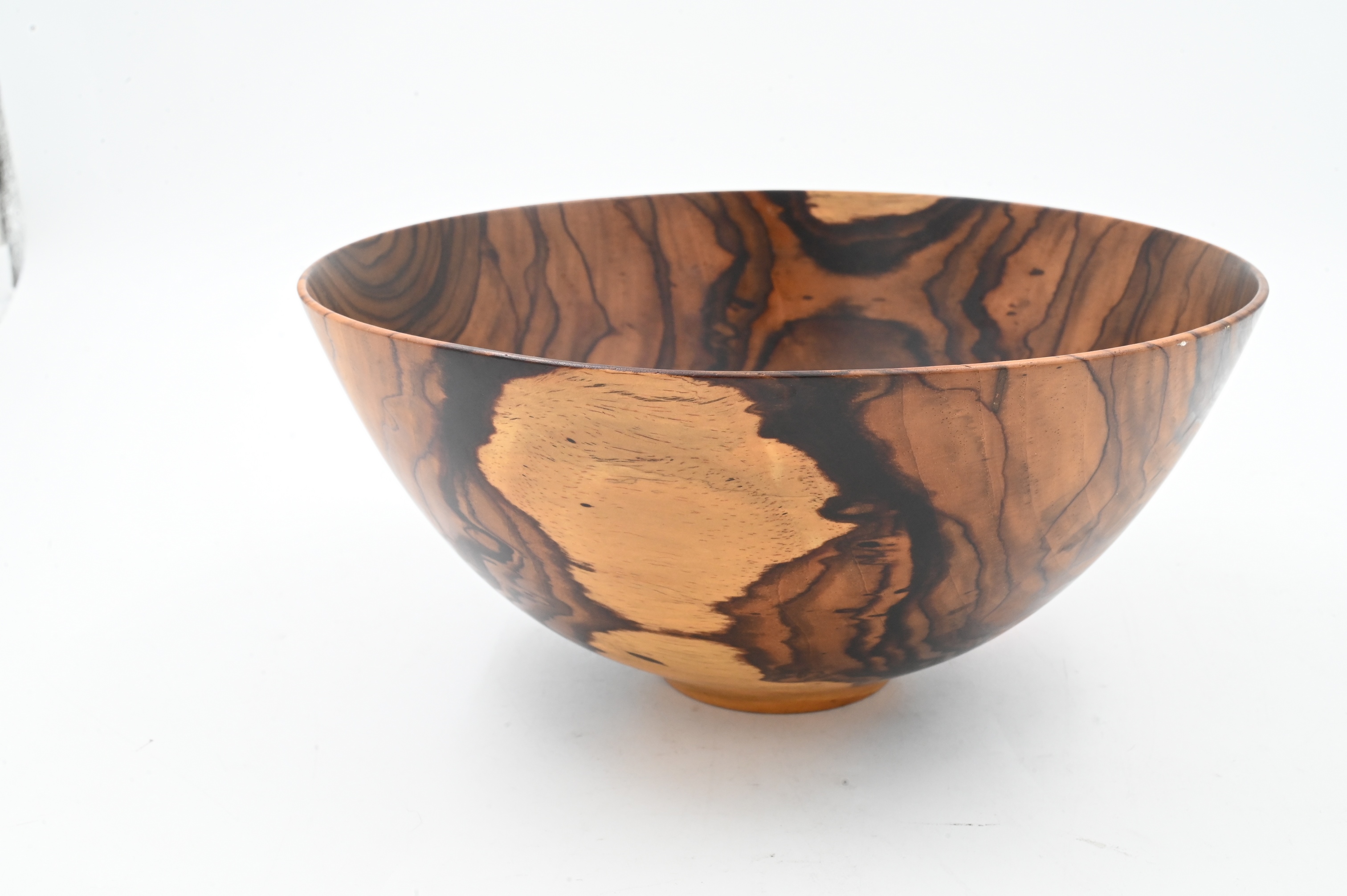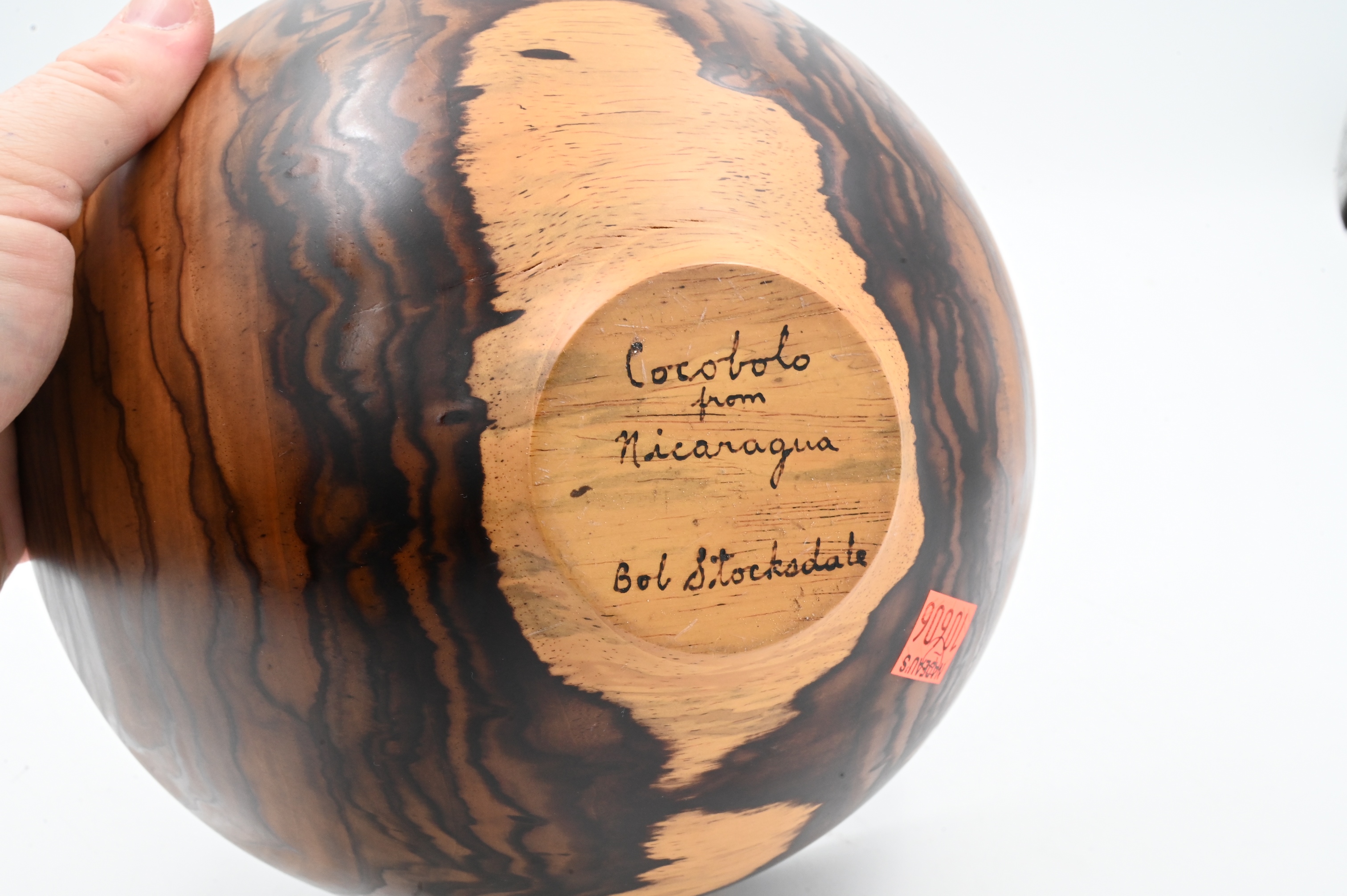 Nicaraguan cocobolo wood bowl having tapering foot, inscribed with wood variety and signed Bob Stocksdale
