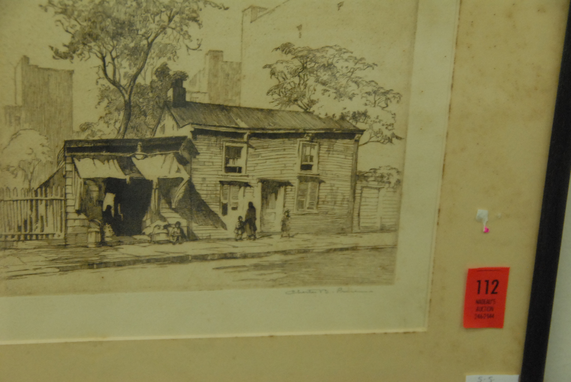 Lot 112: Chester Boyce Price 1885-1962 OLD HOUSE, NEW YORK etching signed lower right Chester B. Price Harlow McDonald & Co. paper label on…