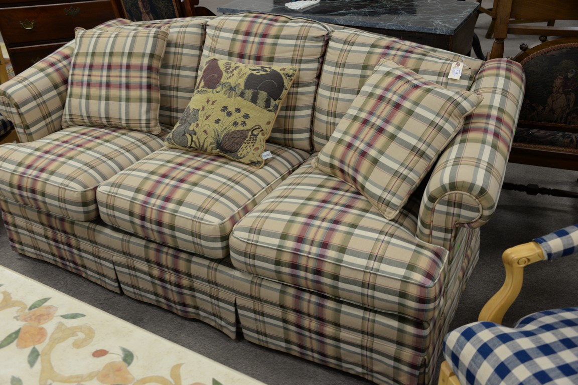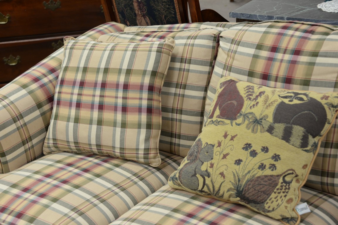 Harden plaid upholstered three seat sofa, like new. lg. 70in.