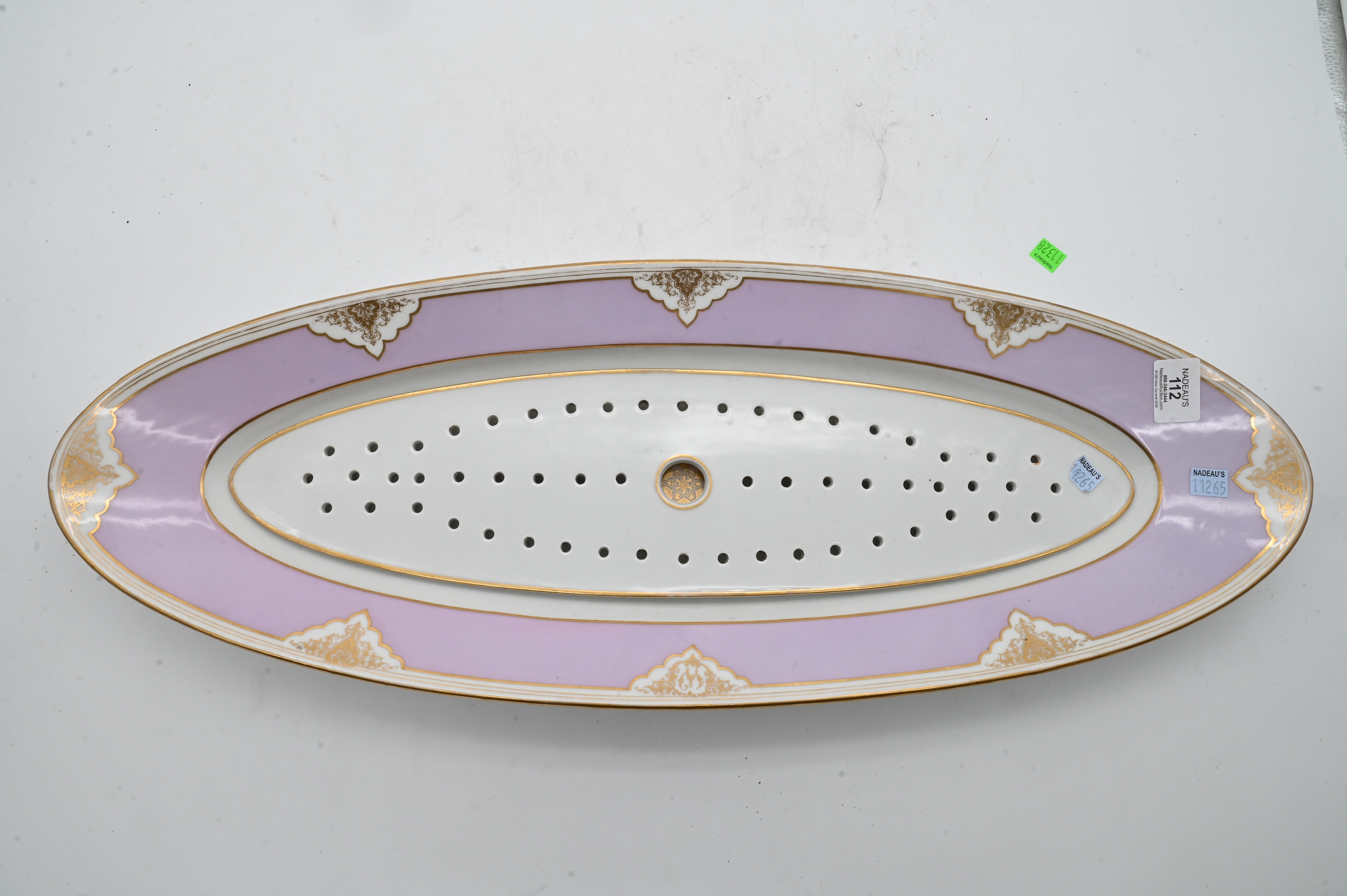 having pierced drip pan in pink and gilt decoration
