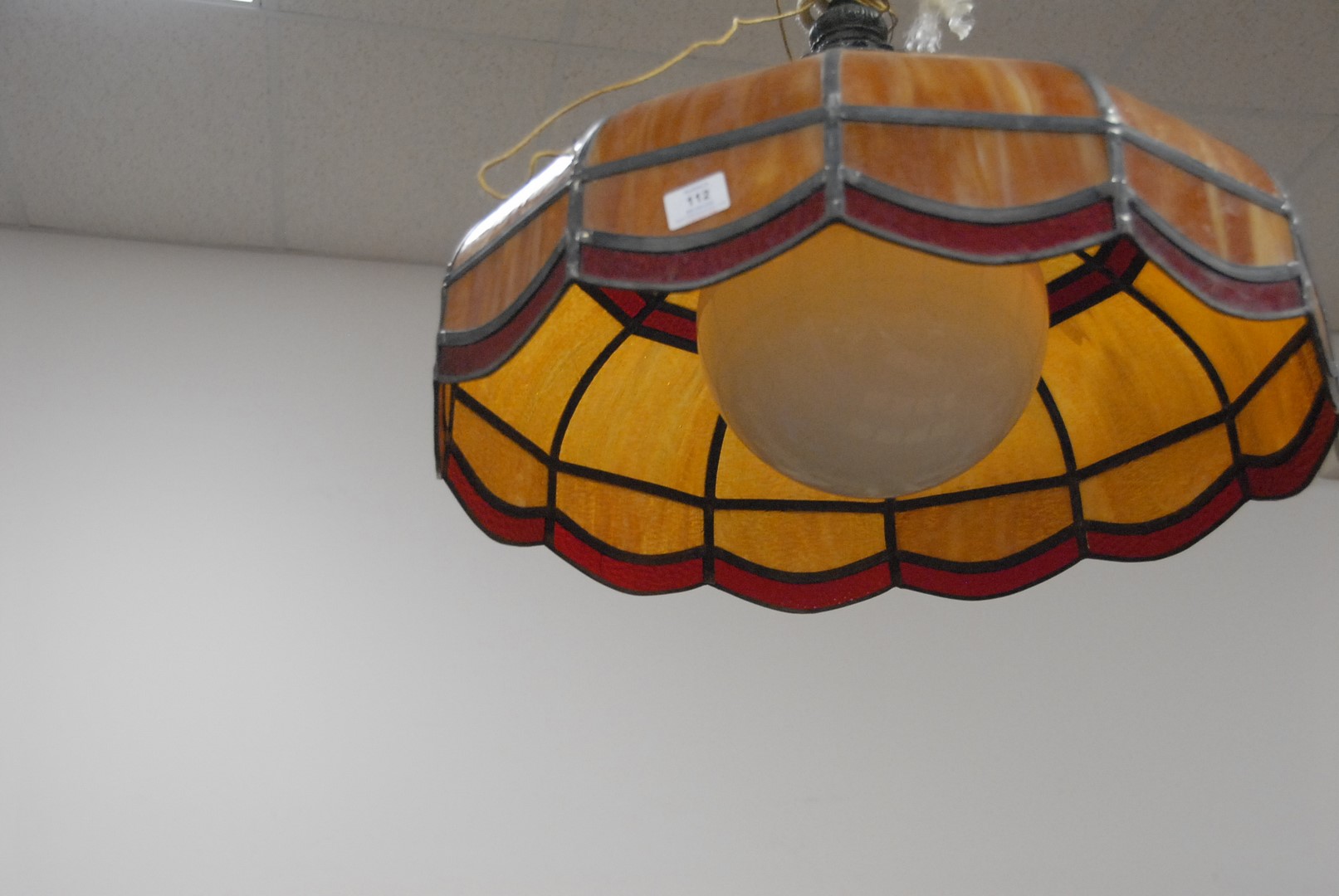 Lot 112: Oriental style slag glass hanging light. dia. 25 in.