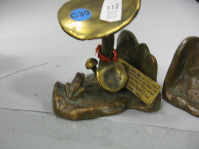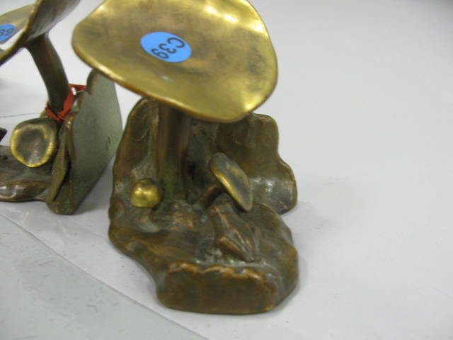 Pair of mushroom bookends with frogs, signed McClelland Barclay