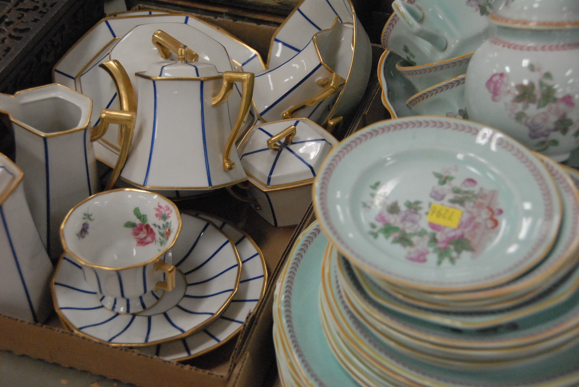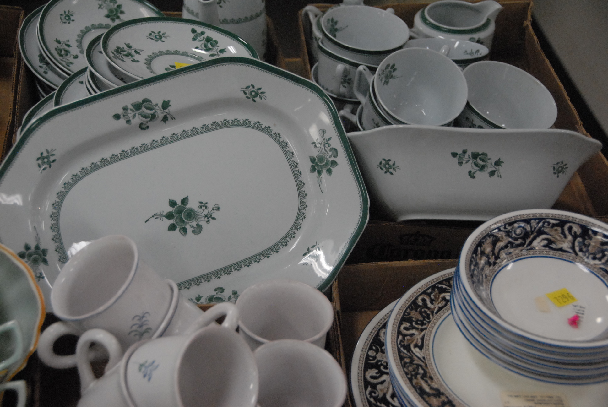 Seven boxes to include six partial china sets, Wedgwood, Limoges, Adams, Spode, etc.