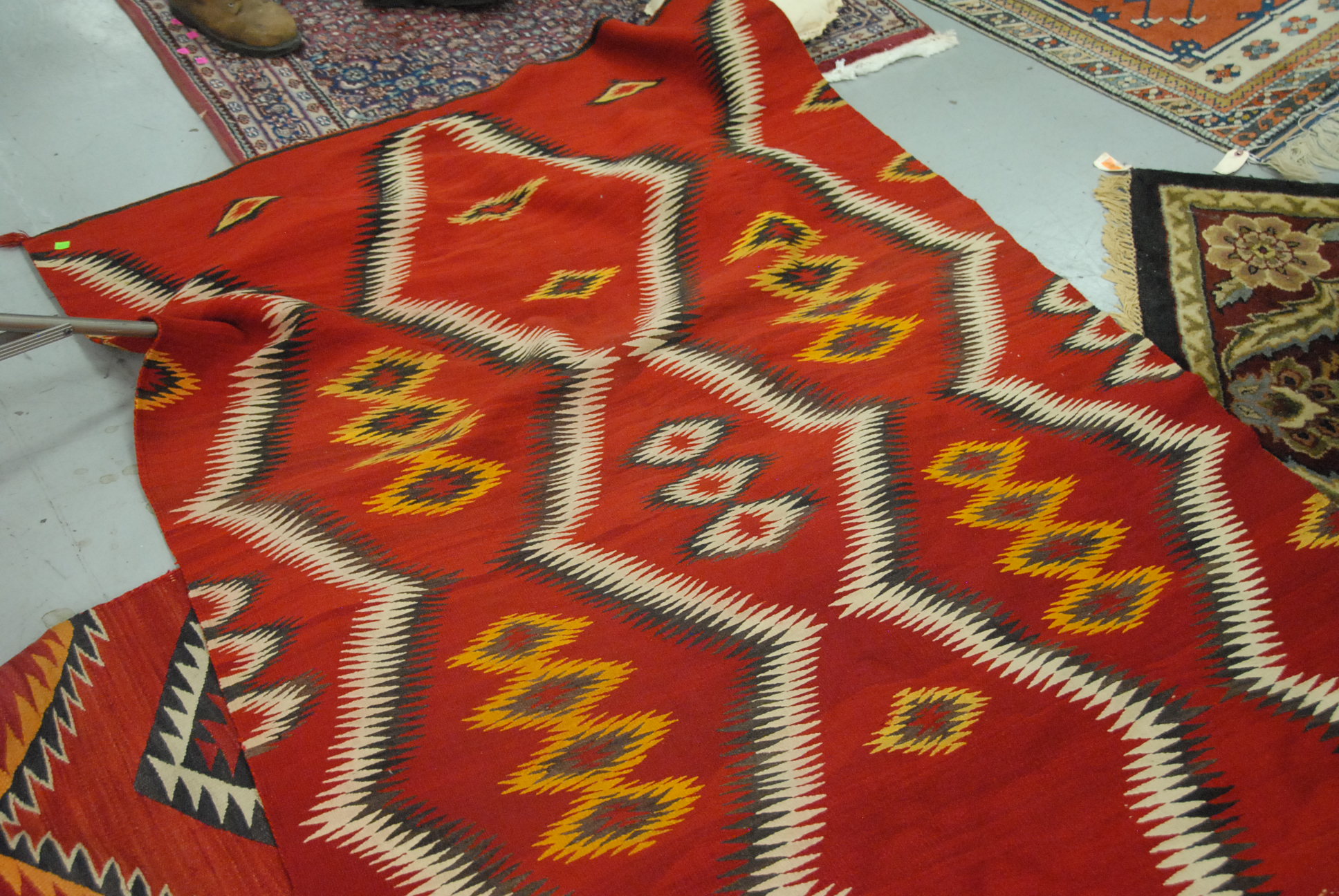 Lot 112: Three Southwest U.S. wool rugs, 3’1 x 5’4, 3’6 x 5’1, and 4’8 x 7’3.