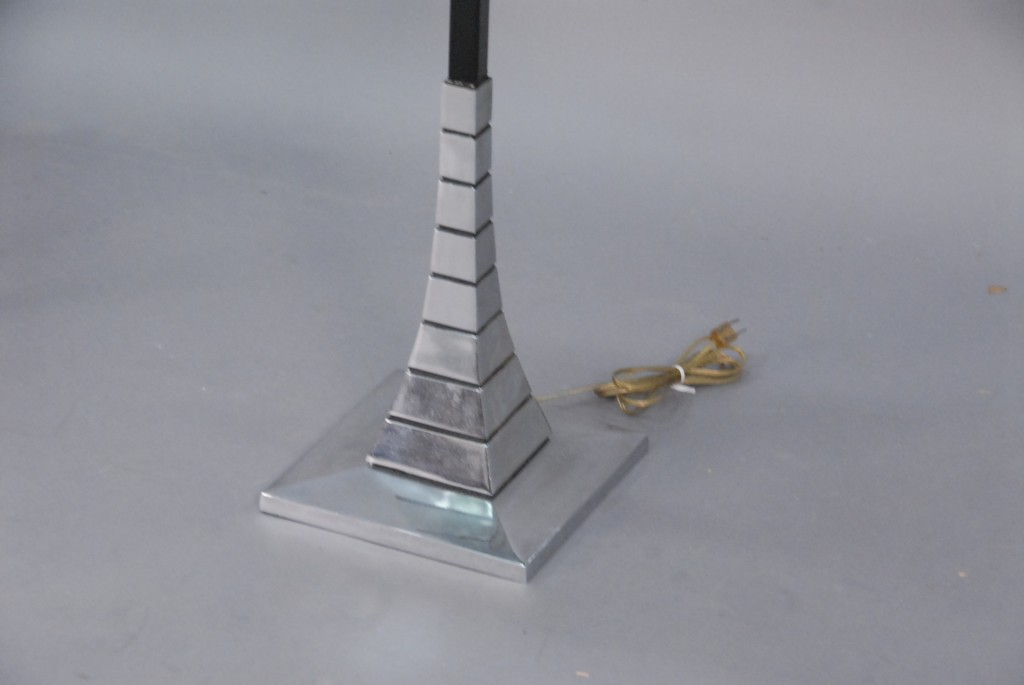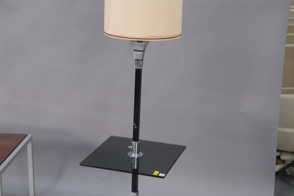 Vintage chrome black metal and glass floor lamp, ht. 60.