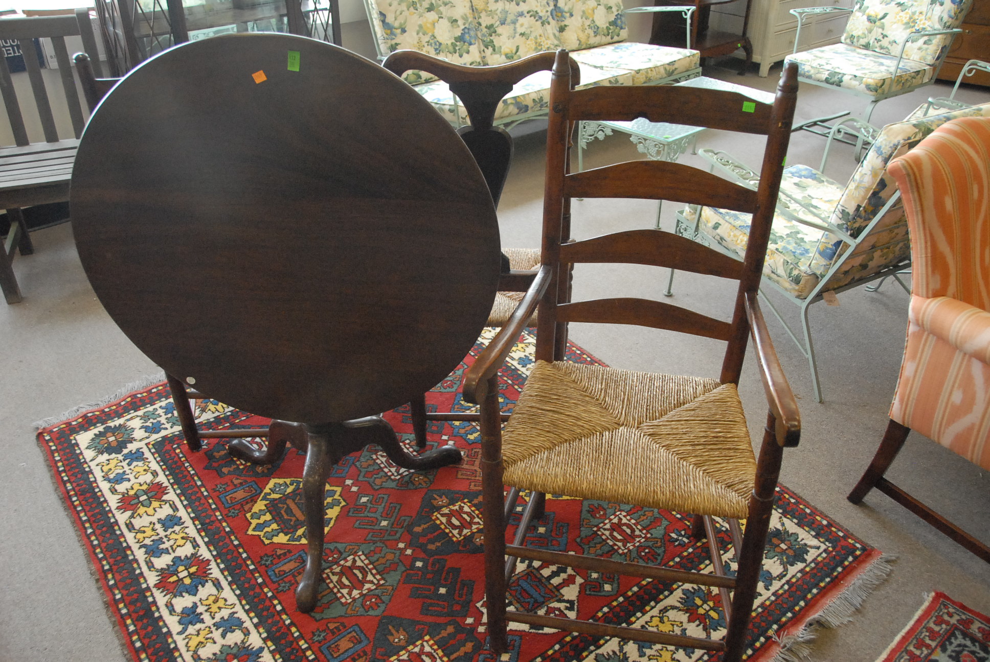 W.K. Cowant Co. custom mahogany tip table, ht. 27in. dia. 32in.