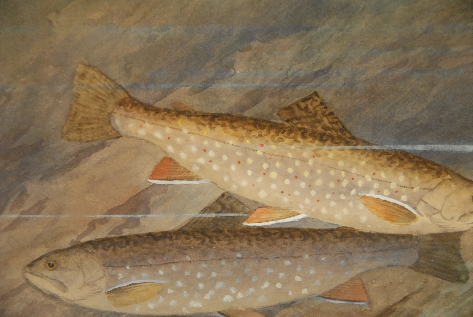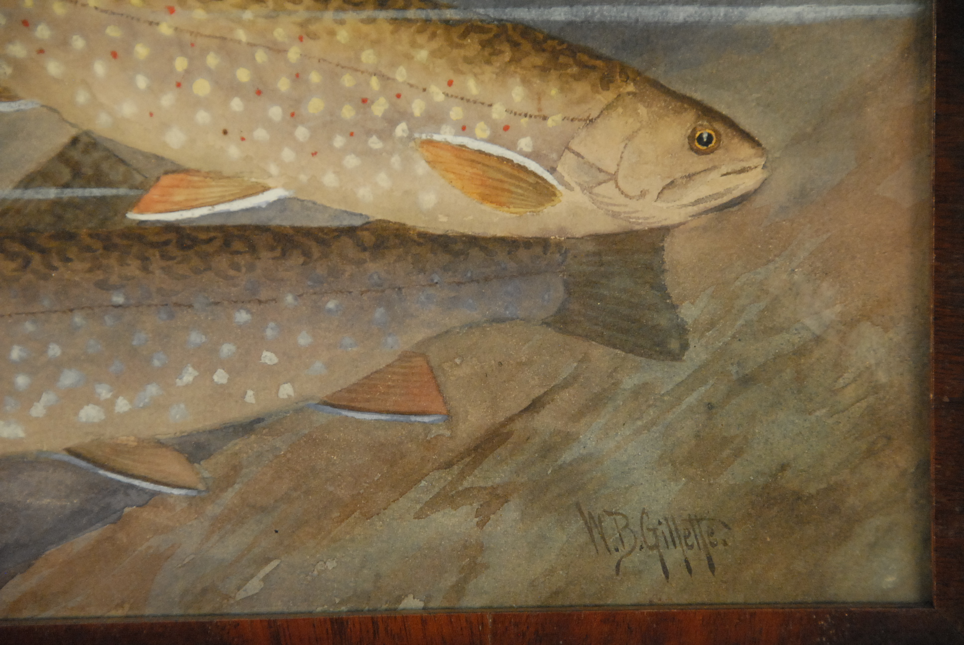 Lot 112: William B. Gillette 1864-1937 TWO BROOK TROUT watercolor signed lower right W. B. Gillette 9 x 11 1/2.