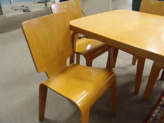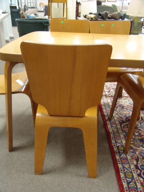 6 piece bent plywood kitchen set marked TJ Molded Plywood Furniture, Rowanoke VA