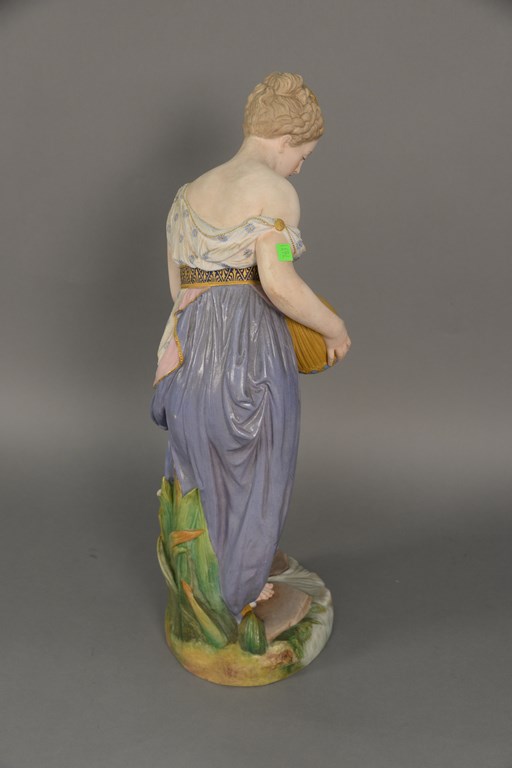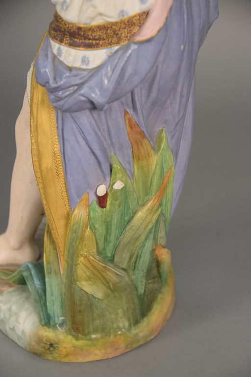Bisque figure with gilt decoration flower on back broken. ht. 29 1/2 in.