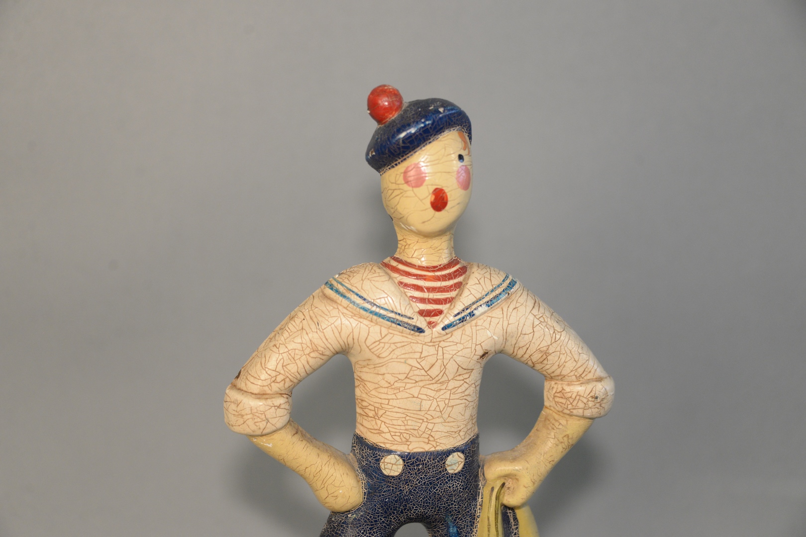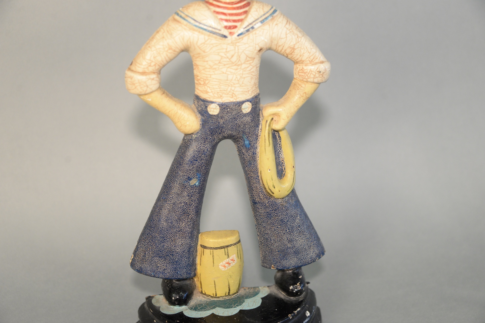 Lot 113: Cast Iron Sailor Doorstop wearing bell-bottom pants and white shirt height 12 inches Provenance: The Estate of Diana Atwood Johnson