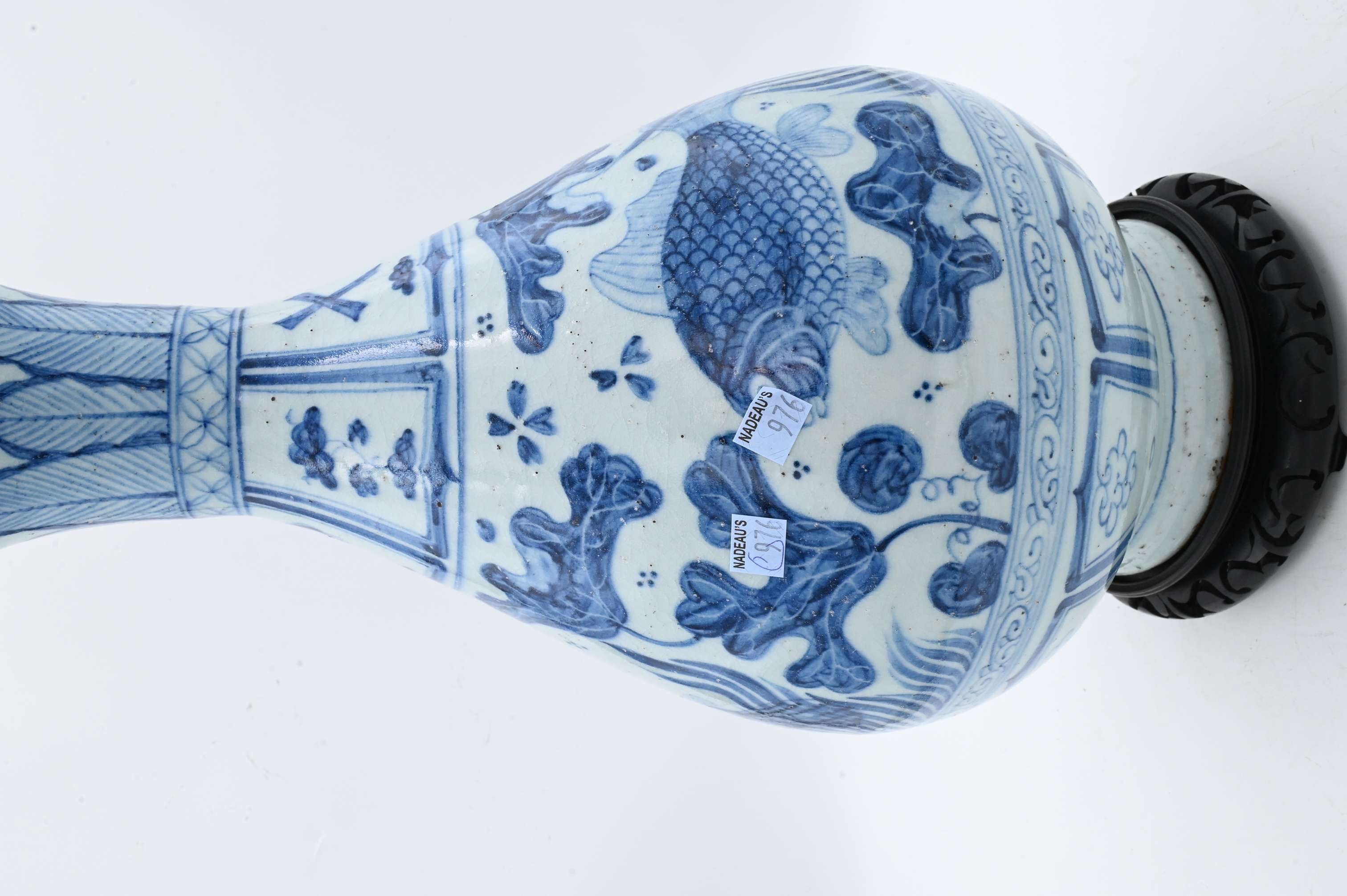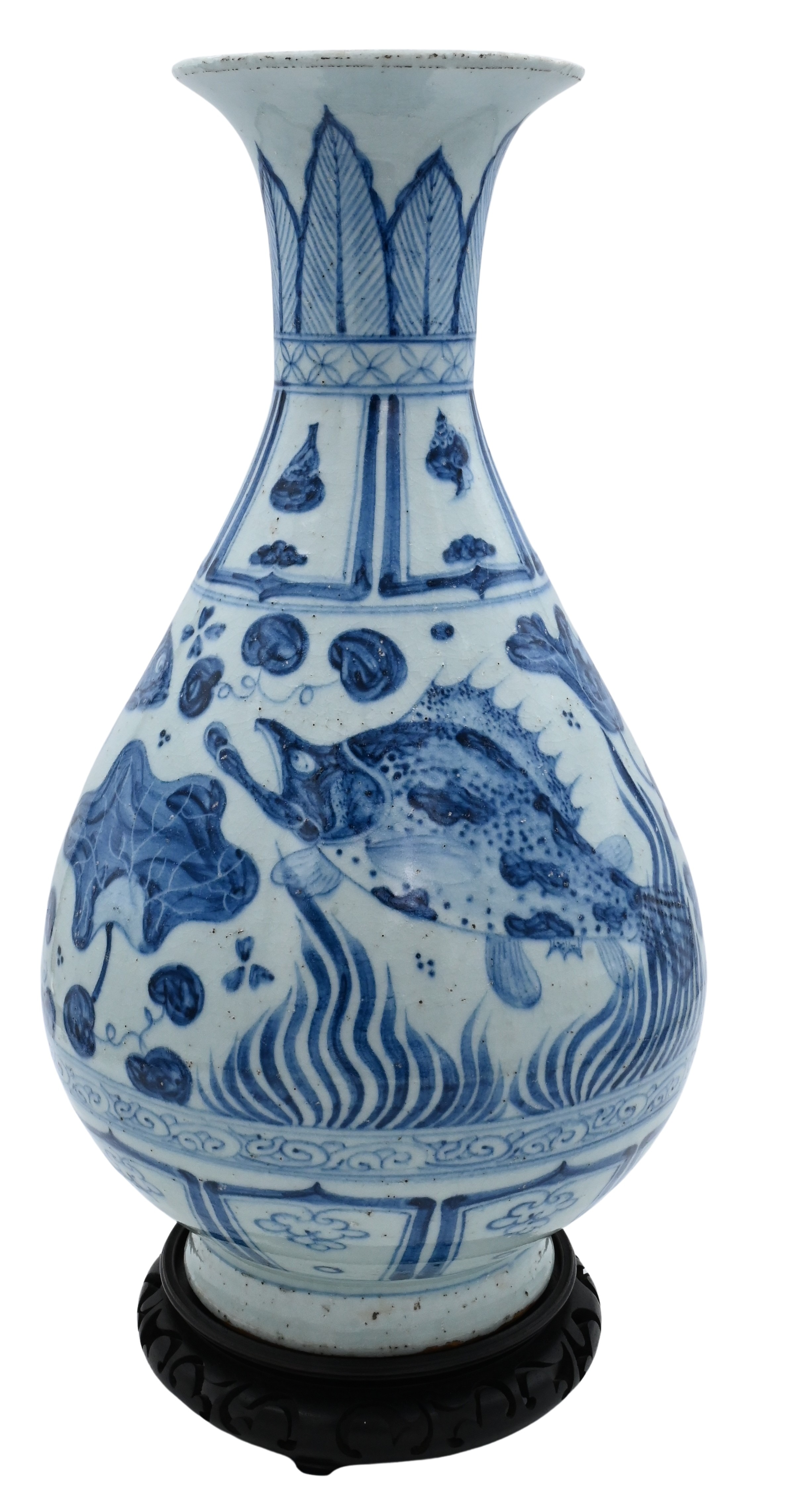 Lot 113: Chinese Yuan Style Blue and White Fish and Algae Vase