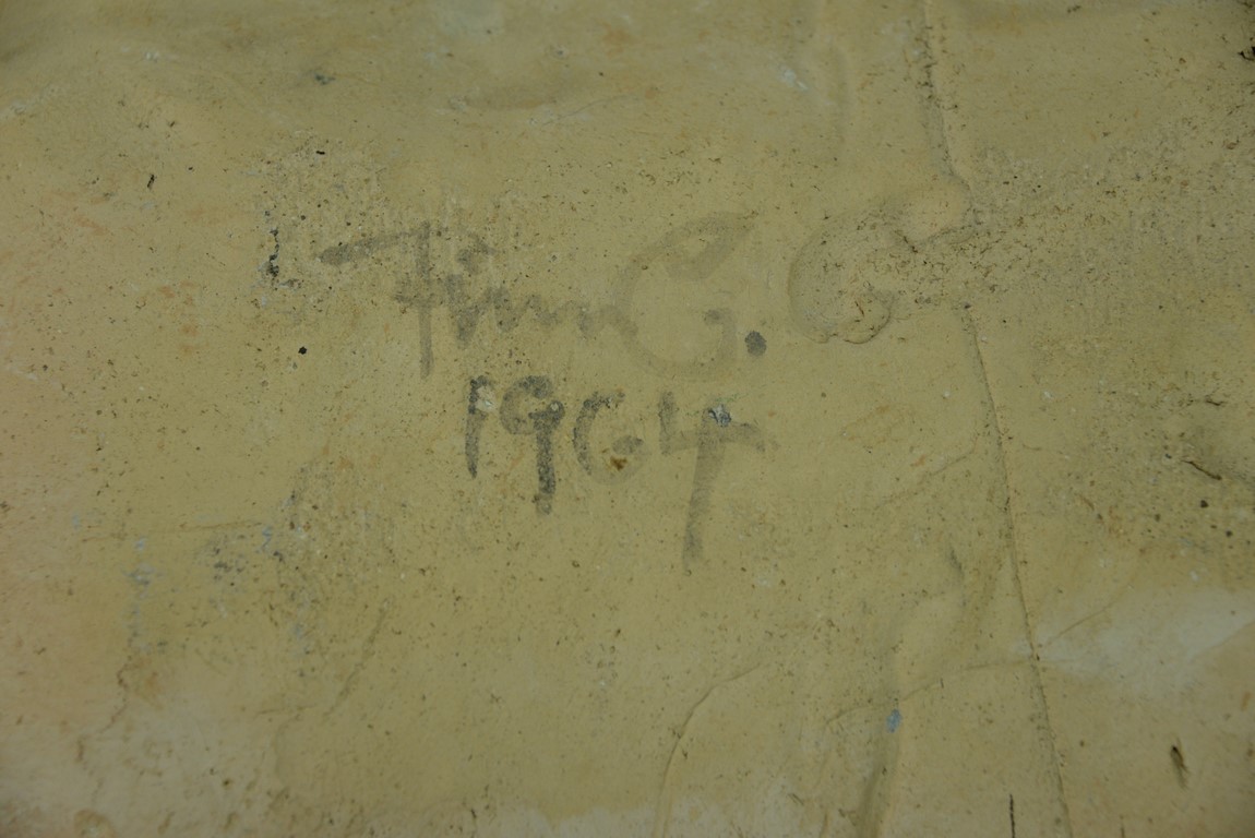 Clay plaque in the style of Picasso, signed illegibly on verso 1964. ht. 20 1/2in., wd. 13 1/2in.