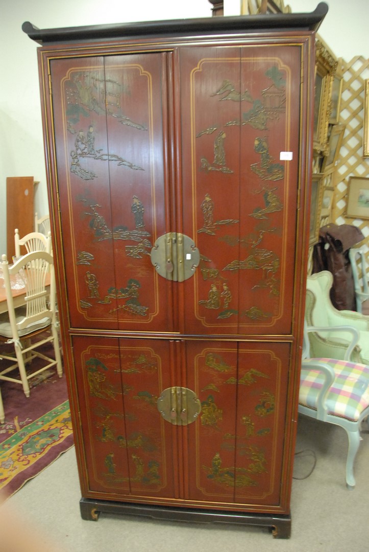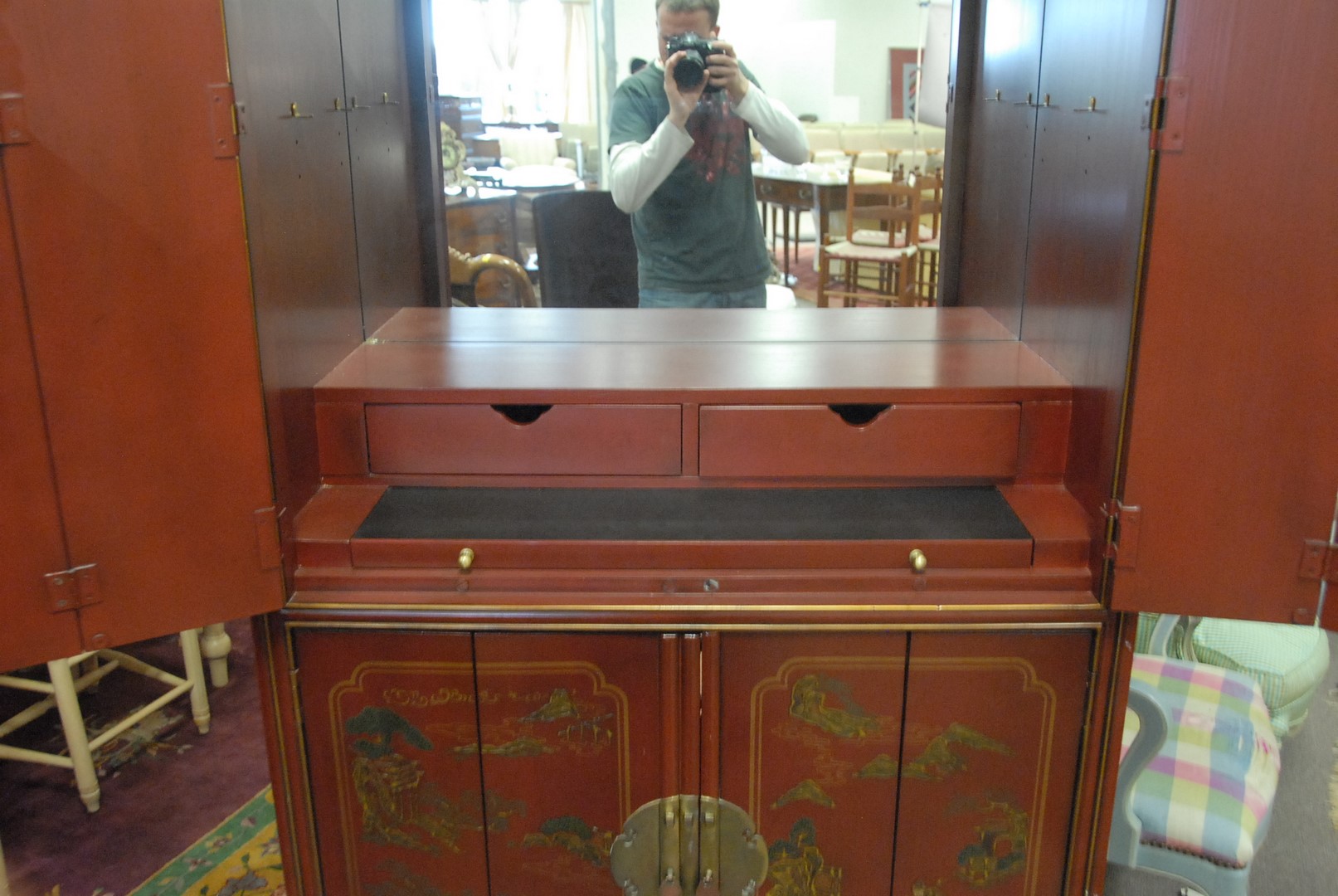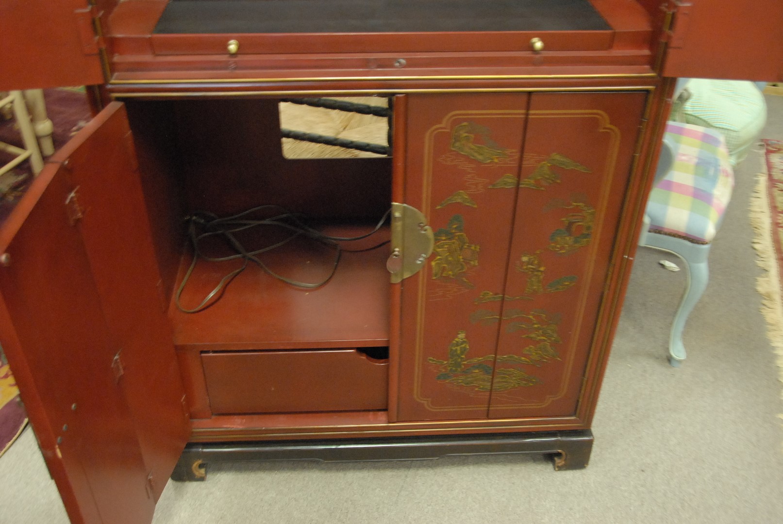 Drexel Chinoiserie decorated bar/cabinet. ht. 82 in. wd. 37 in. dp. 19 in.