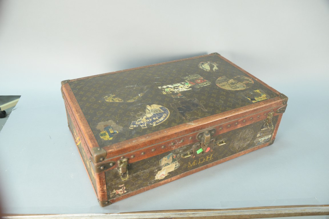 Five piece Stanley Furniture Co. bedroom set with slate inset tops, along with a camel saddle stool.