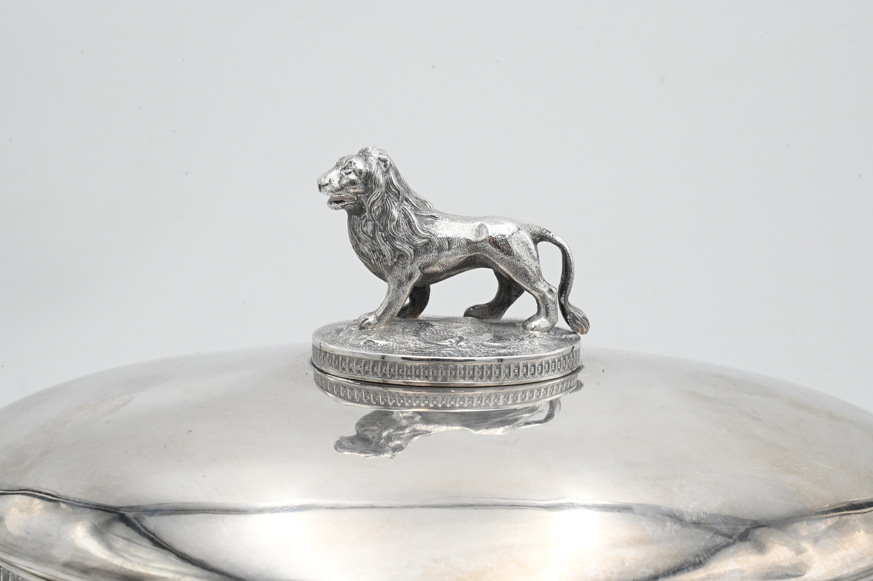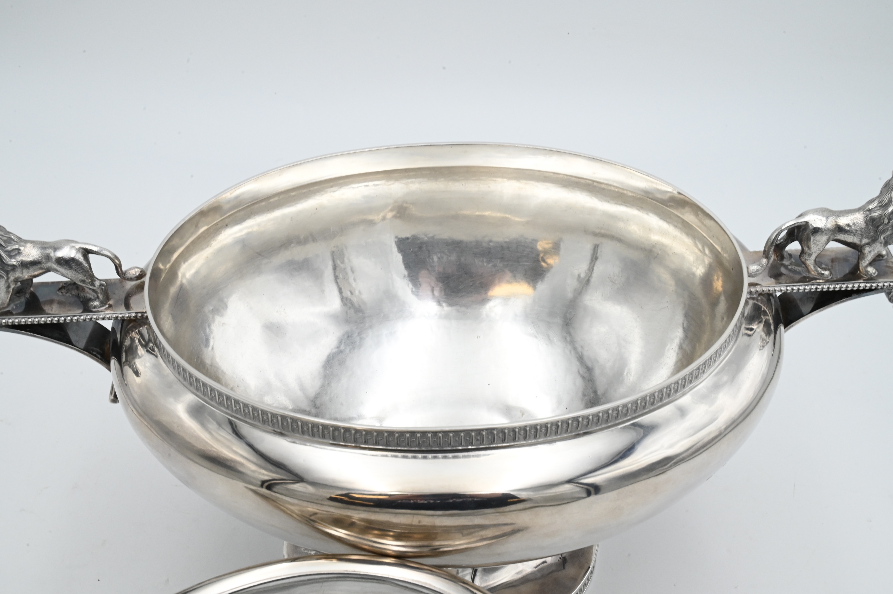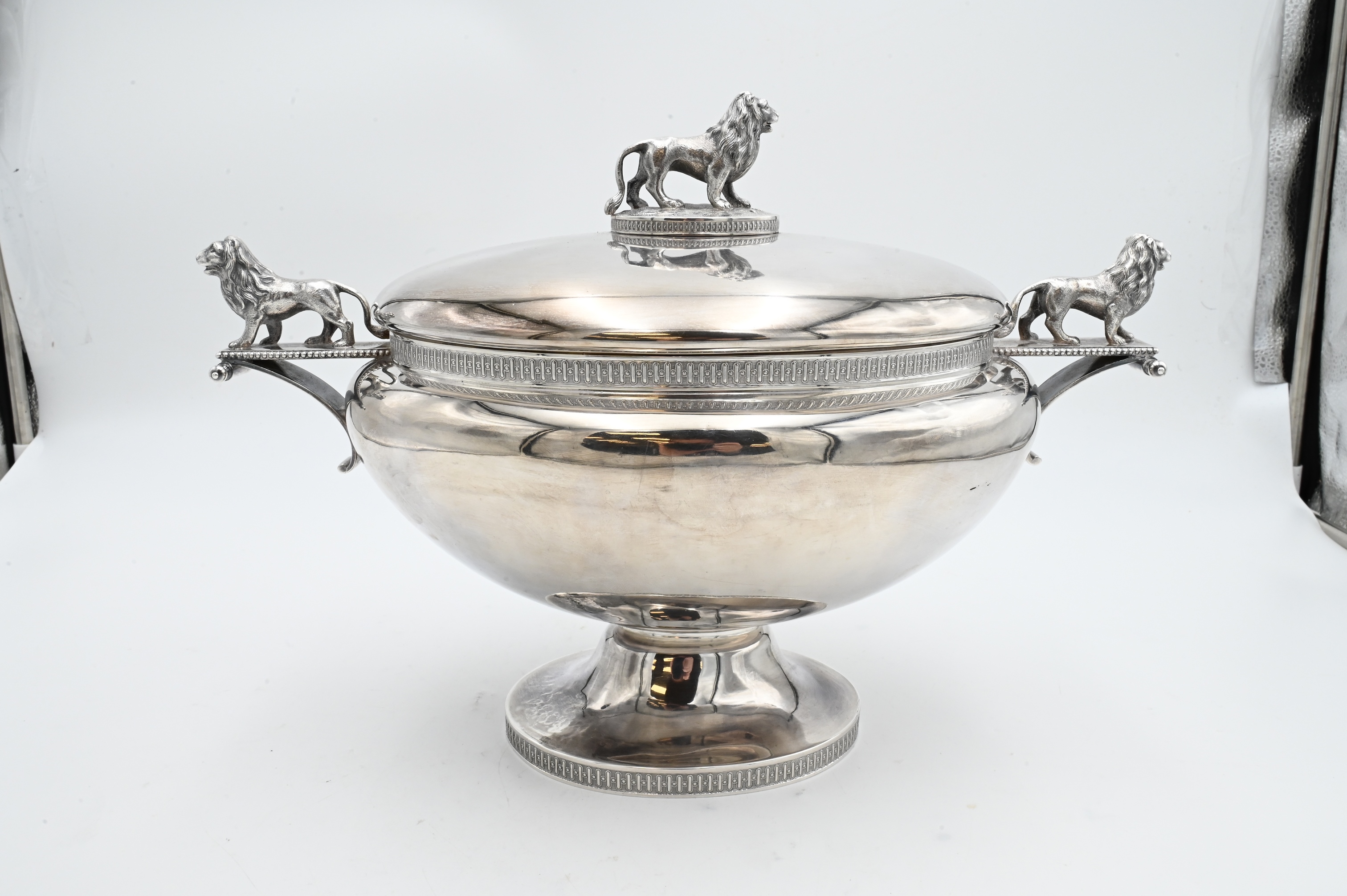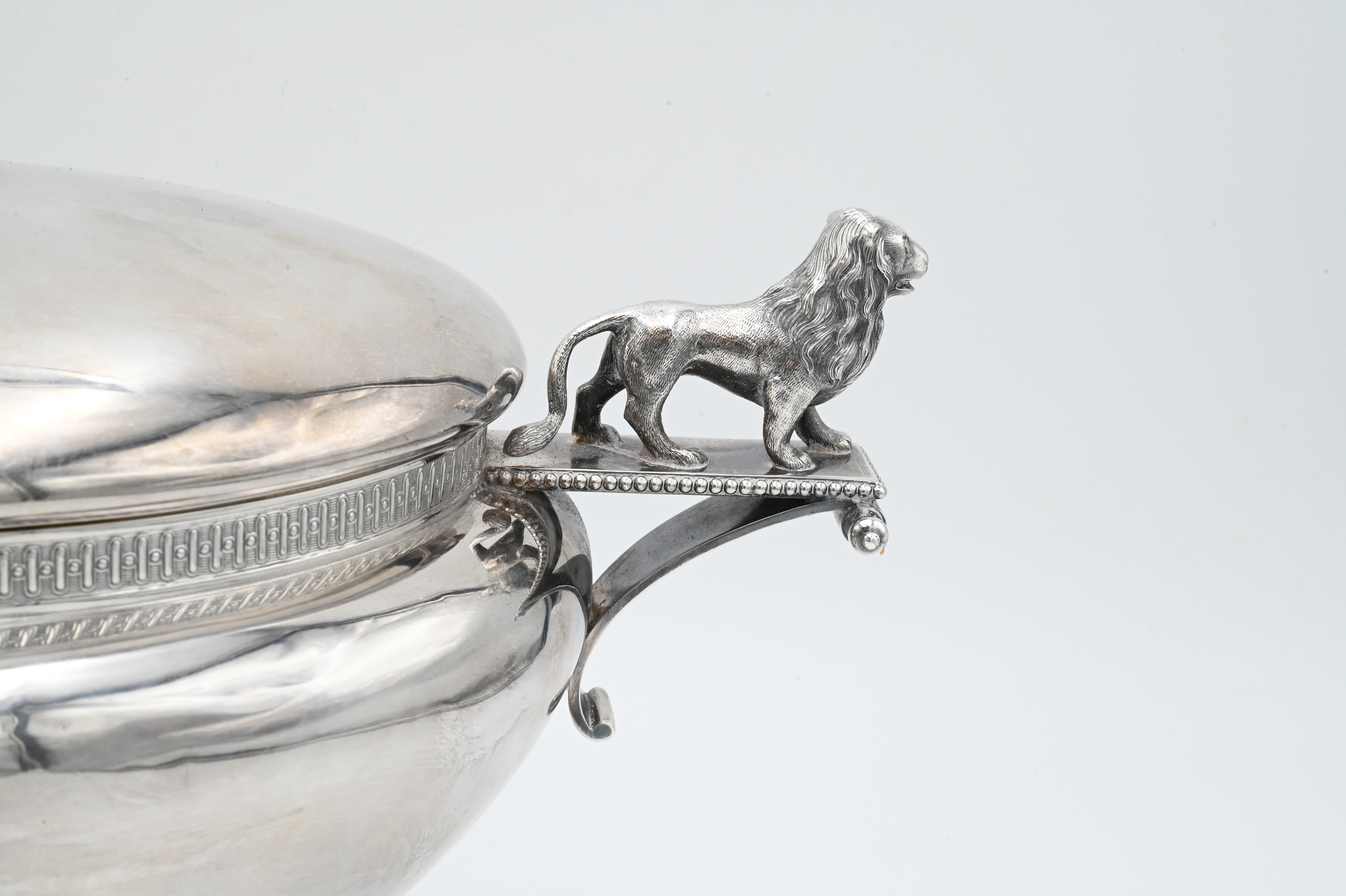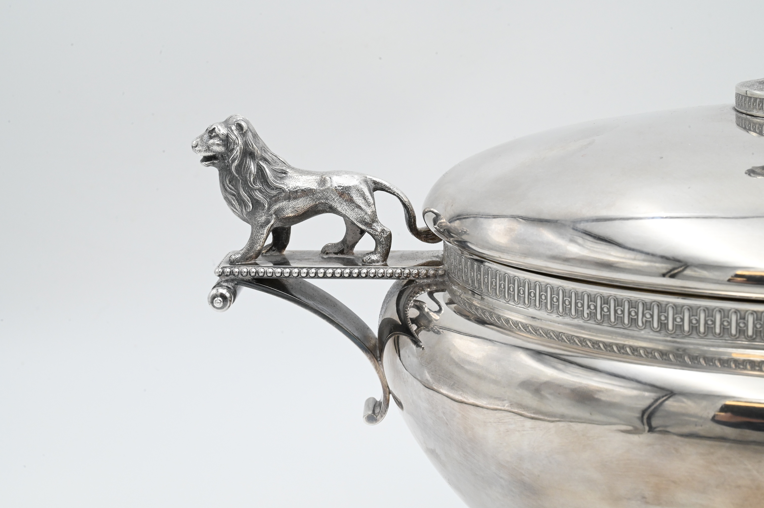 having lion finial and lion mounted handles, marked Ford and Tupper Sterling 925, N.Y. 1870