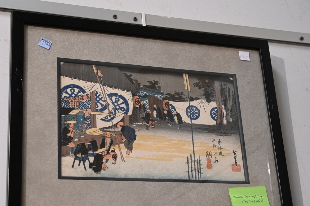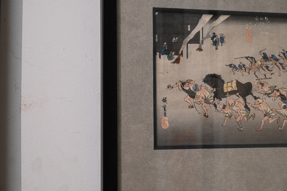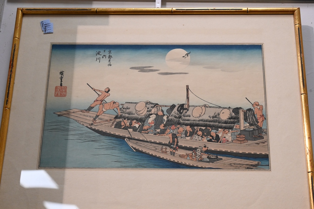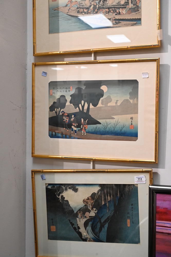Group of Six Japanese Woodblock Prints, 8 1/2″ x 13 1/2″.